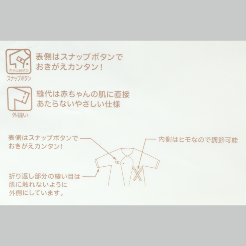 縫いしろは赤ちゃんの肌に直接あたらないやさしい仕様。