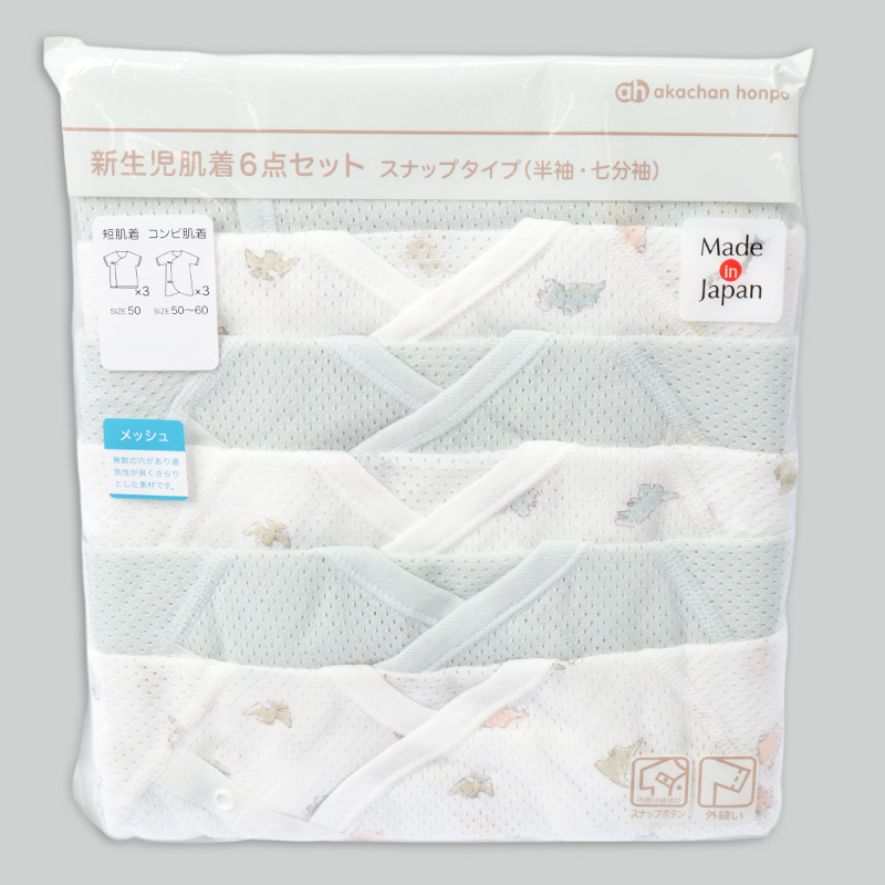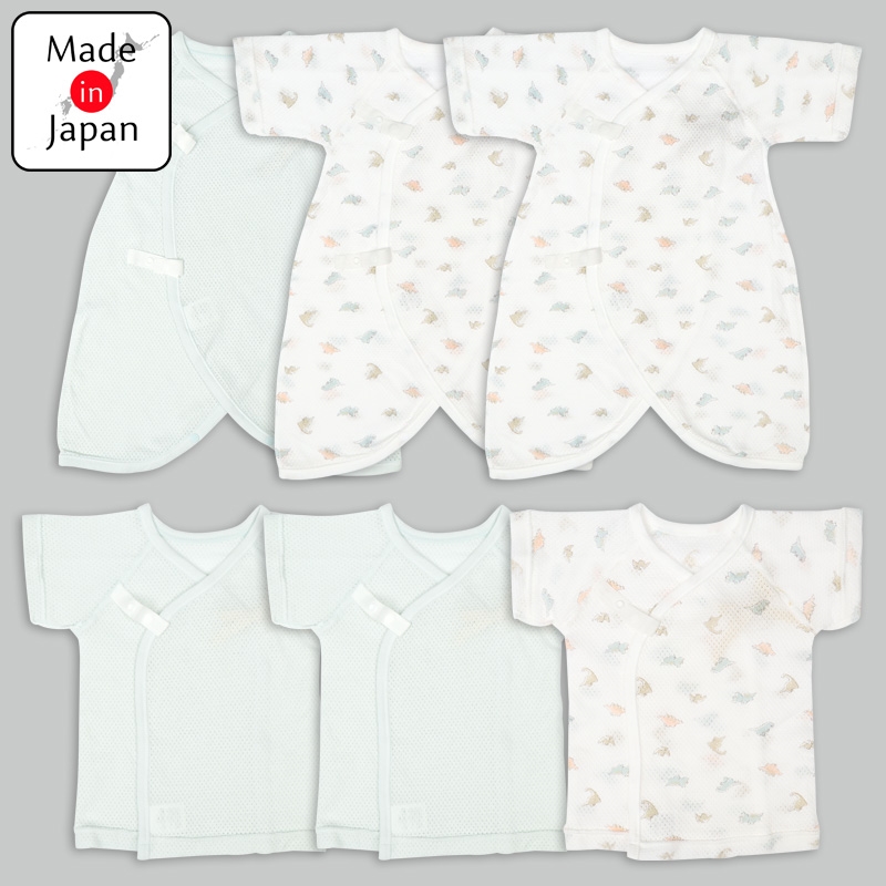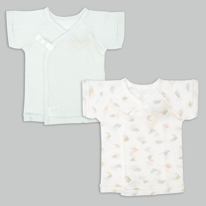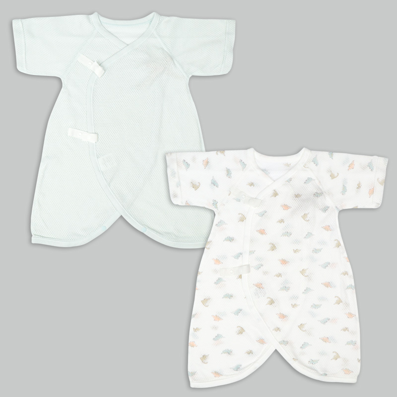 素材:メッシュ(綿100%) サイズ(約・ cm)= 短肌着 50cm(着丈 32 、 身幅 21.5 、袖丈17) コンビ肌着 50-60cm(着丈45 、 身幅23 袖丈21)