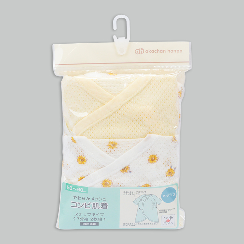 素材:メッシュ(綿100%) サイズ(約・ cm)=コンビ肌着 50-60cm(着丈45 、 身幅23 袖丈21)