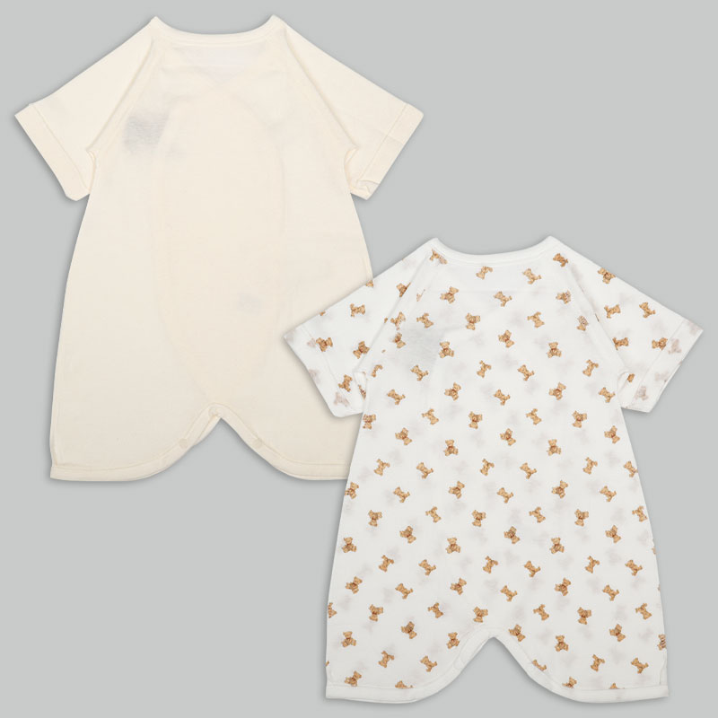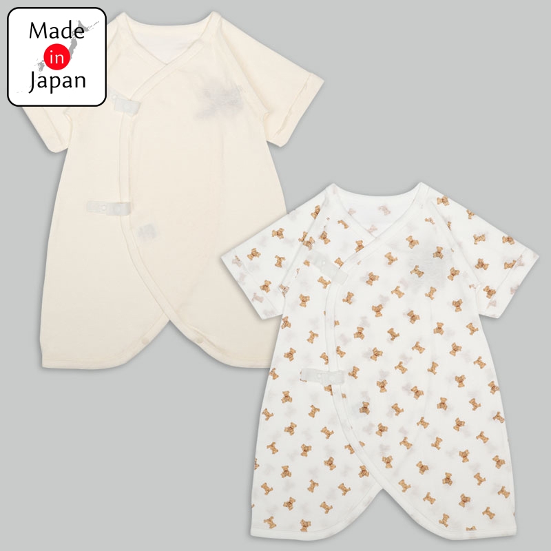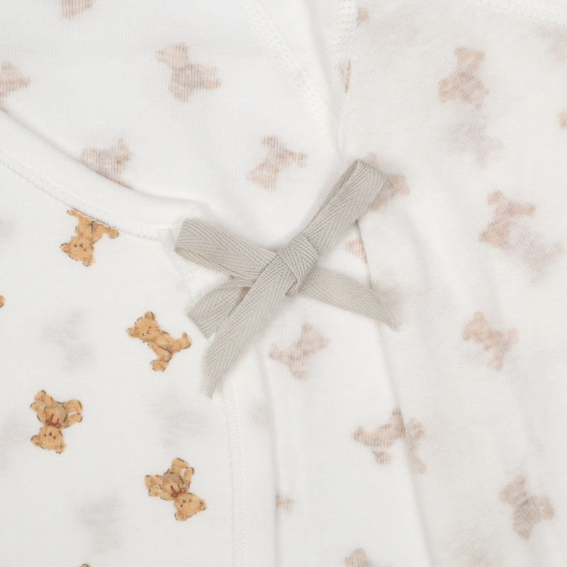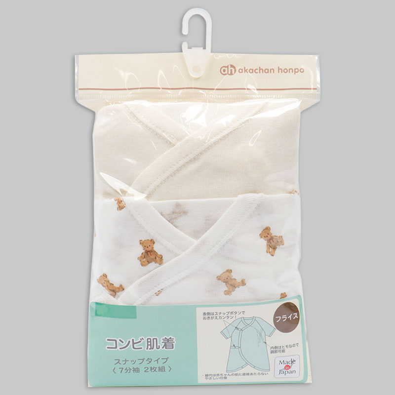 コンビ肌着2枚組スナップ七分袖 テディベア アイボリー