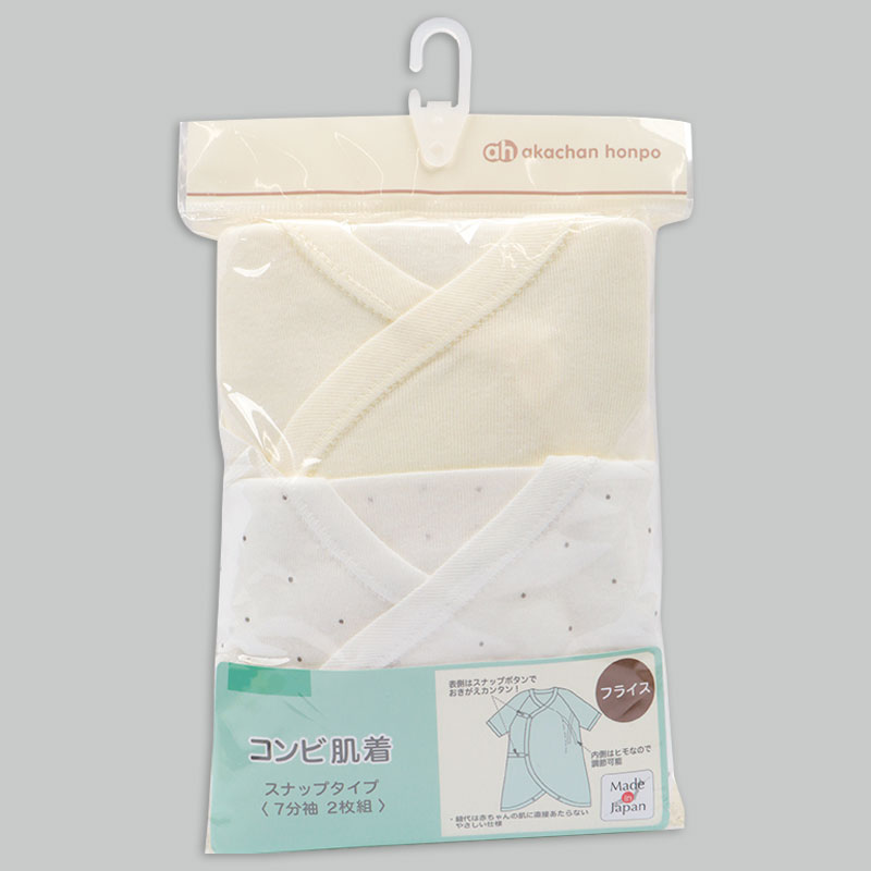 素材:フライス(綿100%) サイズ(約・ cm)=コンビ肌着 50-60cm(着丈45 、 身幅23 袖丈21)