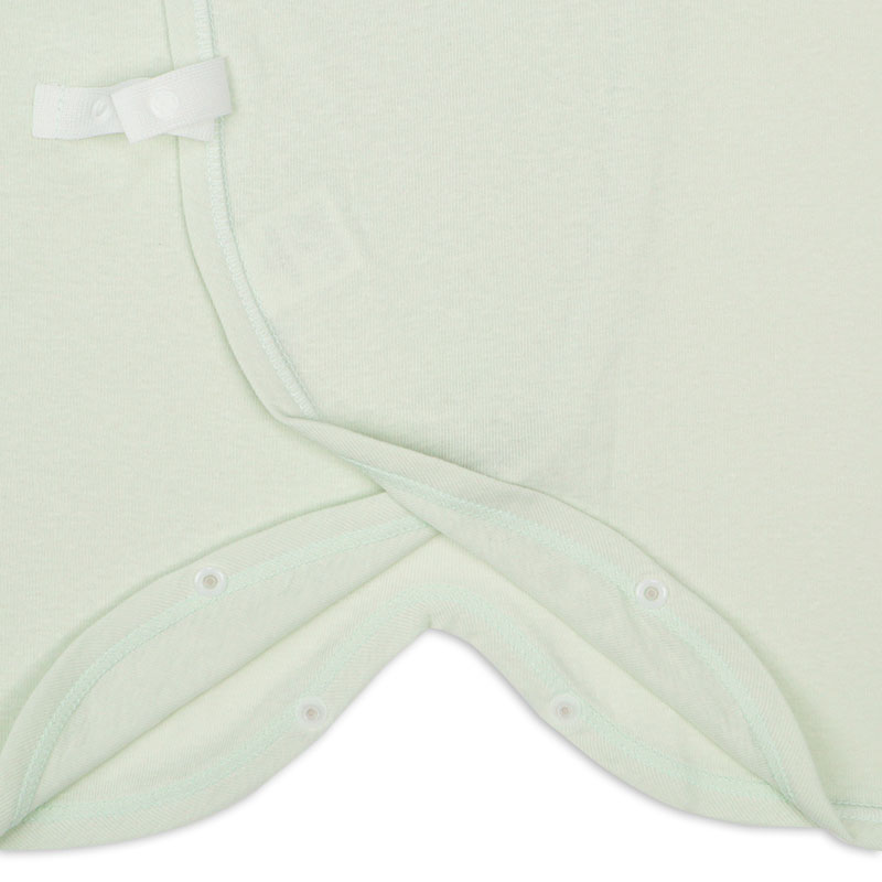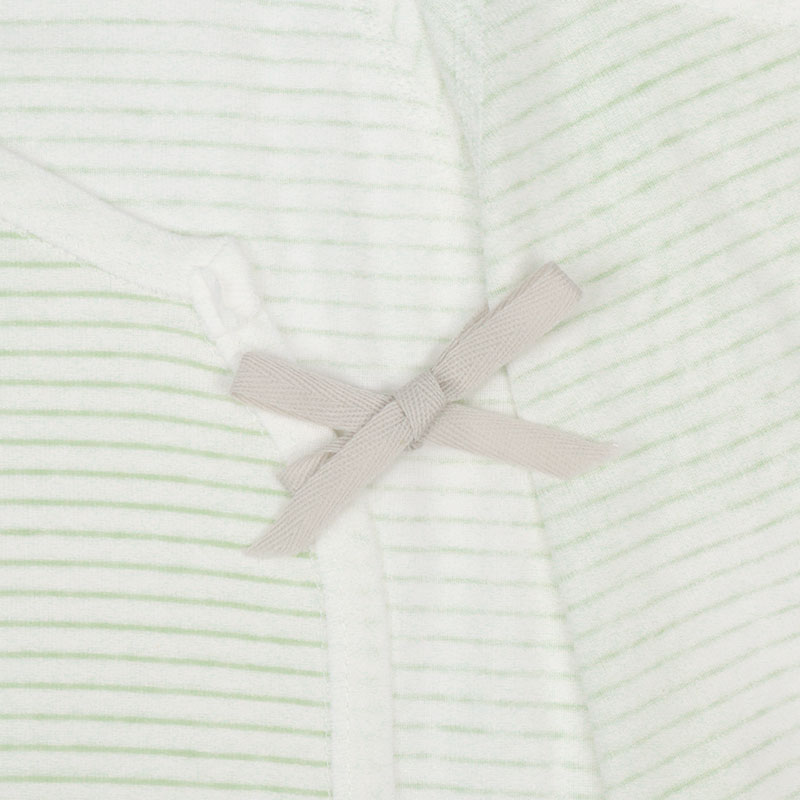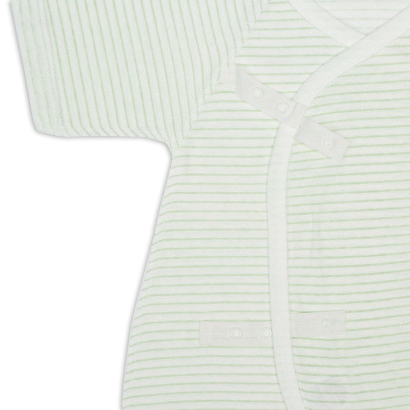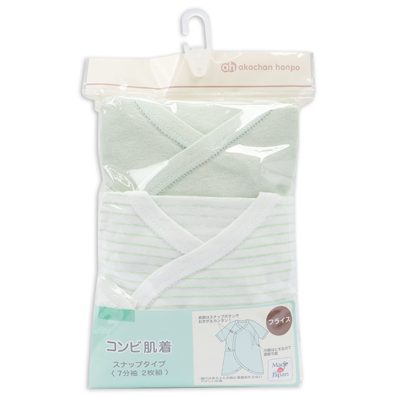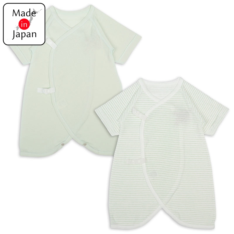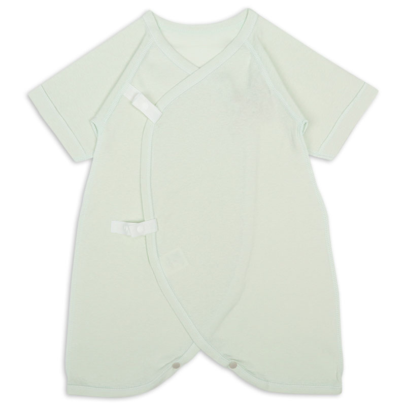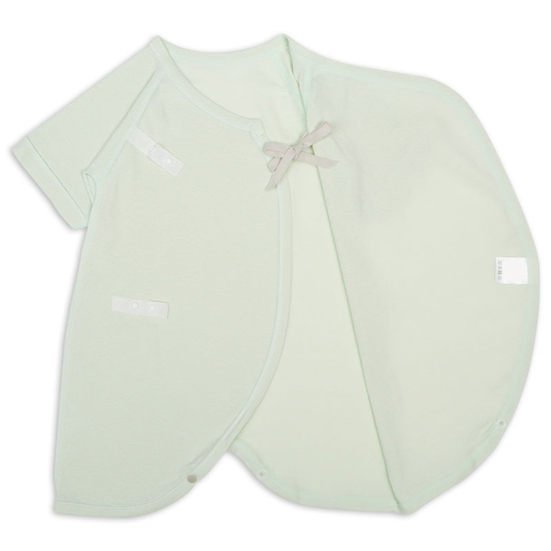 肌触りの良い綿100%のフライス生地を使用。 縫いしろは赤ちゃんの肌に直接あたらないやさしい仕様。 外側はスナップタイプでお着替え簡単。 内側はひもタイプで調節可能、肌当たりもやさしいです。 一年を通してご使用いただける素材です。
