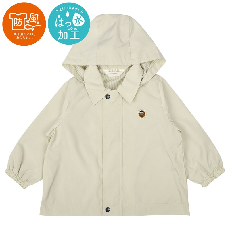 天候が変わりやすい春先にぴったりなはっ水加工付き。おしりまですっぽり隠れる長めのシルエットです。男女問わず着用していただけるユニセックスデザイン。フードは取り外し可能で、お出かけにはもちろん通園通学にも着られる1枚です。