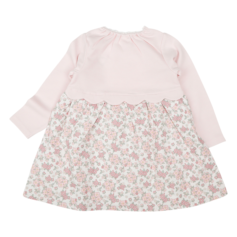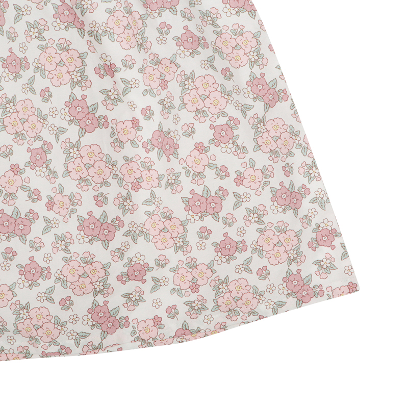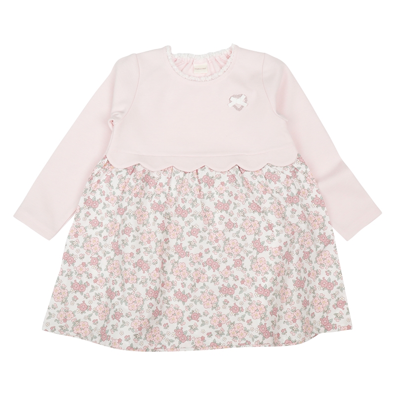 トップスはポンチ素材、スカート部分はやわらかいブロード素材を使用したワンピースです。