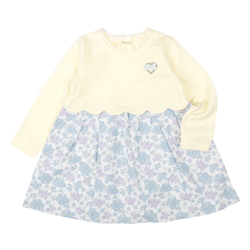 素材 上身頃 ポリエステル73% 綿27% スカート部分 綿100% サイズ 100/110/120 総丈 53/58/63 身巾 31/33/35 肩巾 23/25/27 裾巾 61/65/69cm