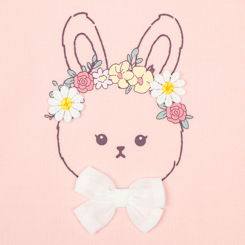 ネコとウサギのモチーフ付き。裾のスカラップ仕様がかわいらしいアクセントになっています。
