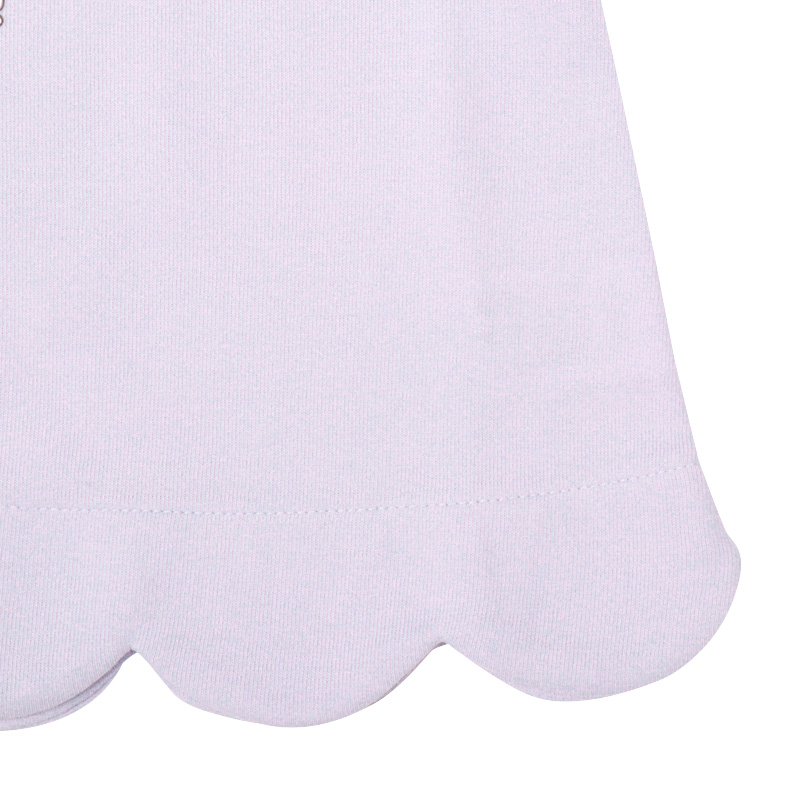 ネコとウサギのモチーフ付き。裾のスカラップ仕様がかわいらしいアクセントになっています。