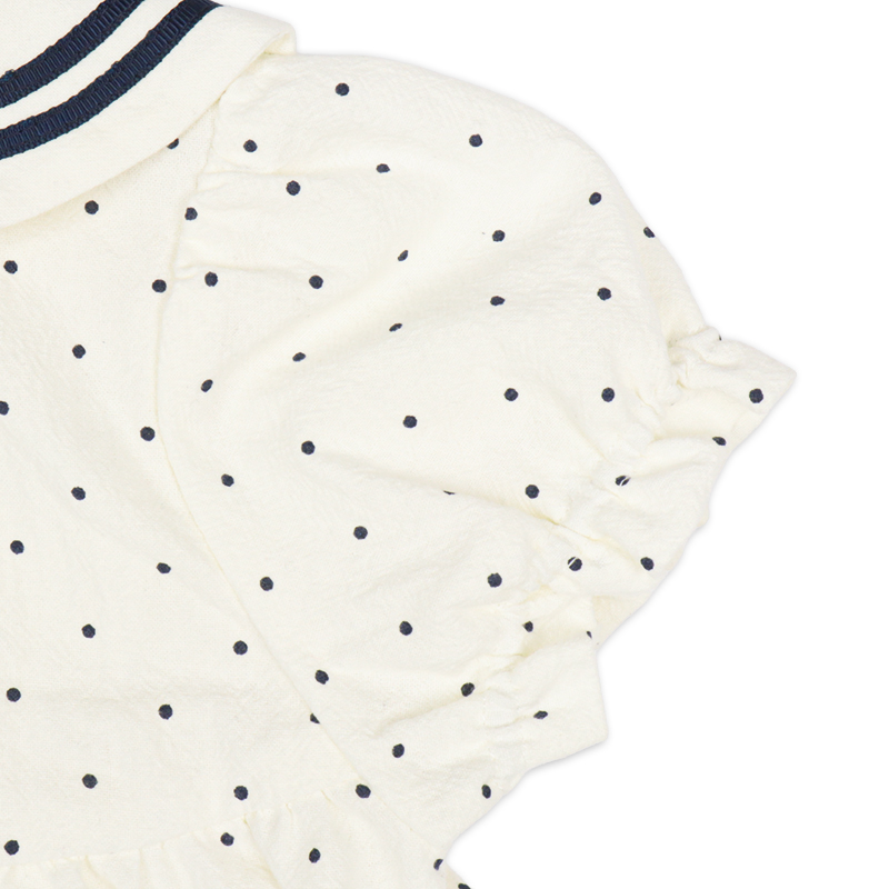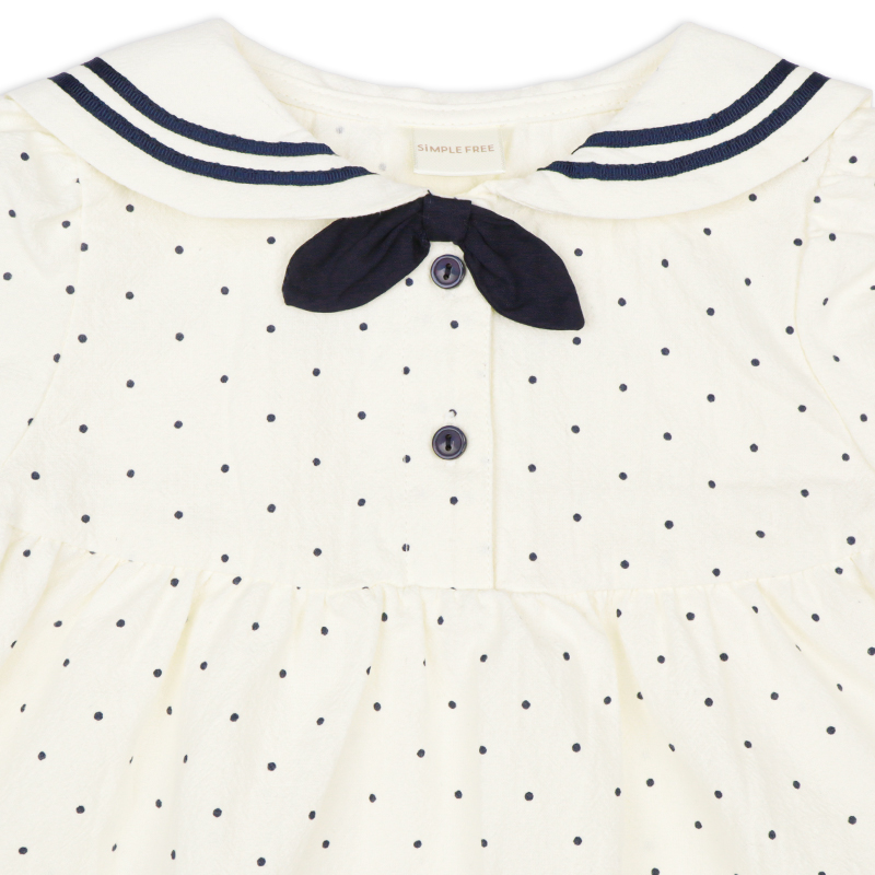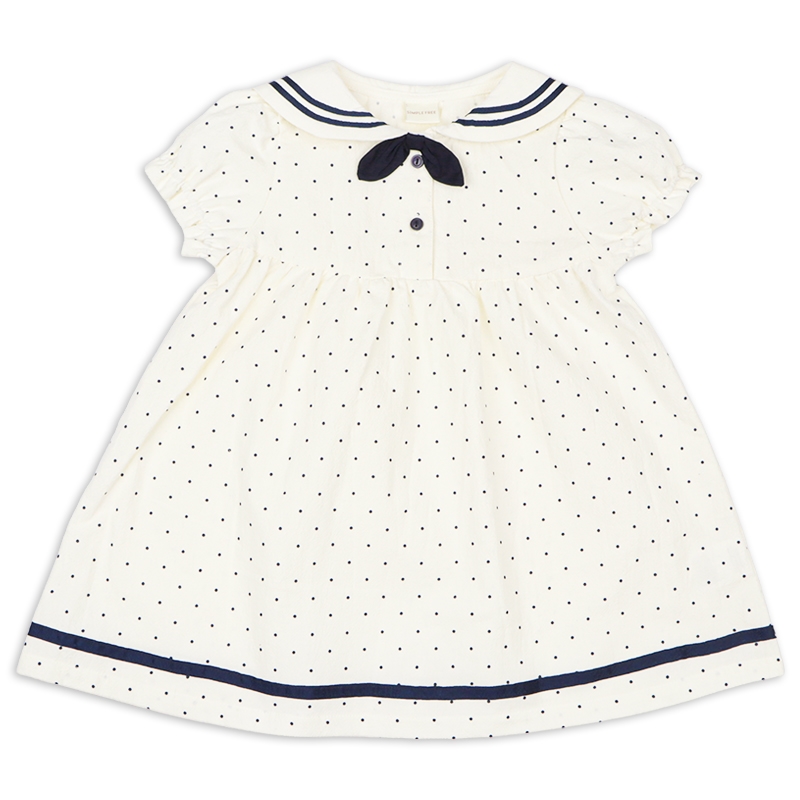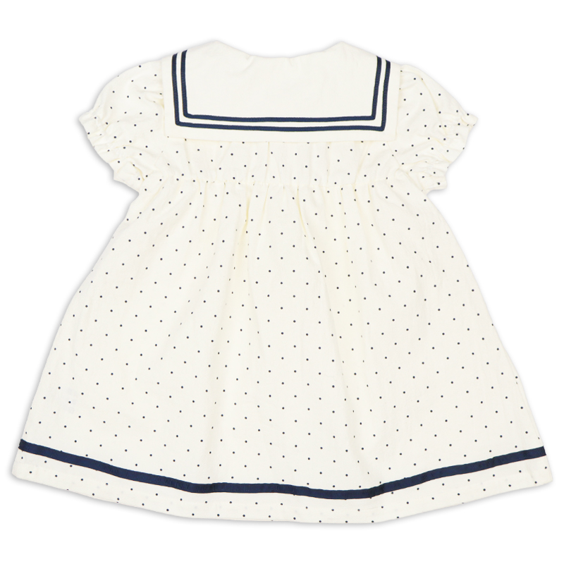1枚でさらりと着こなせるセーラーワンピースです。 定番のアイボリーとネイビーとの2色展開。前開きボタンのため、お着替えしやすい仕様となっています。 普段使いはもちろんお出かけやフォーマルな場でも使える1枚です。