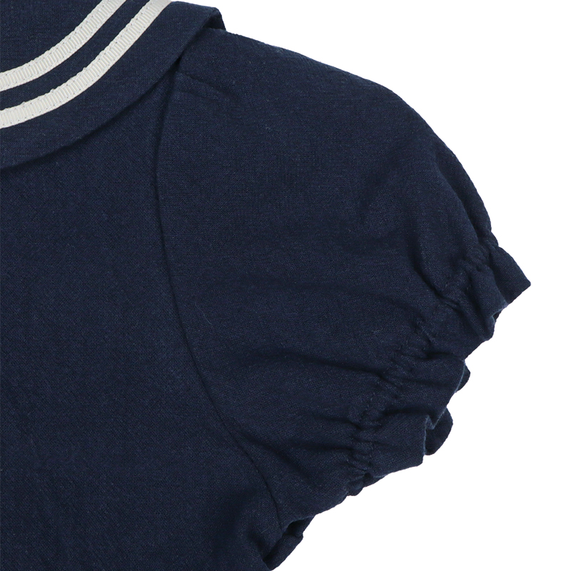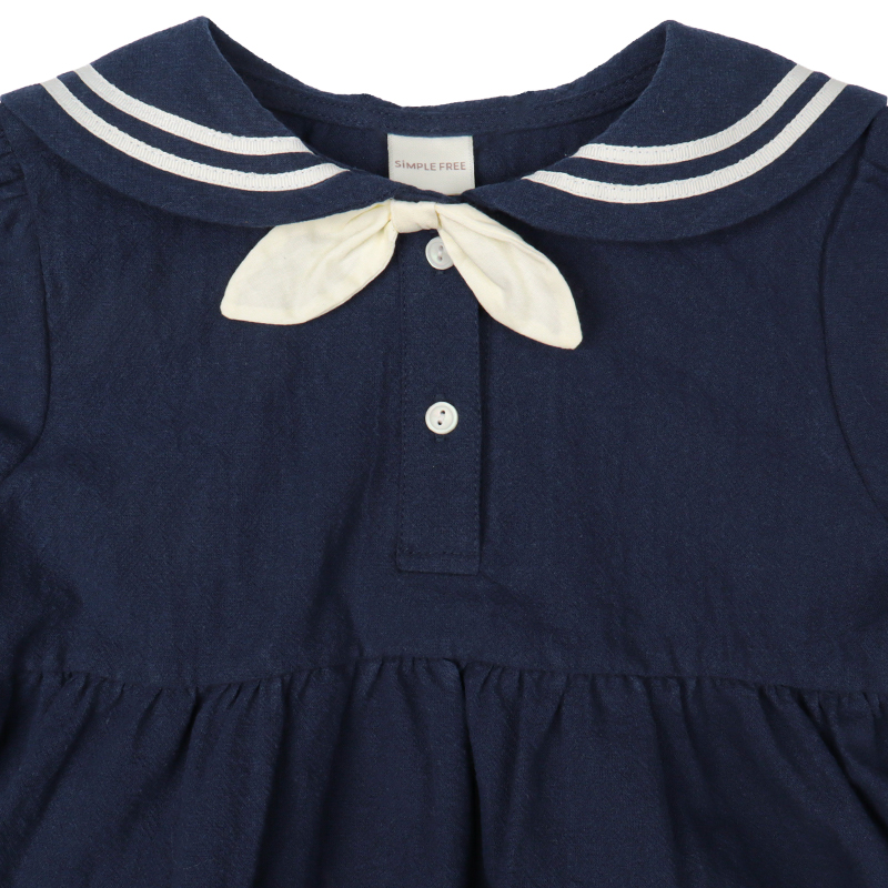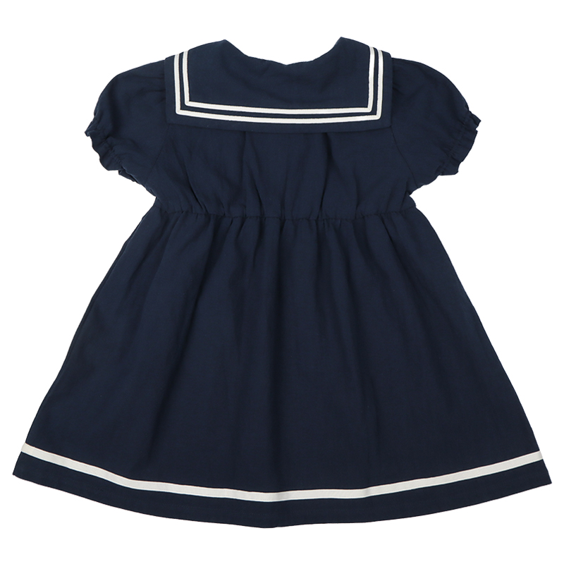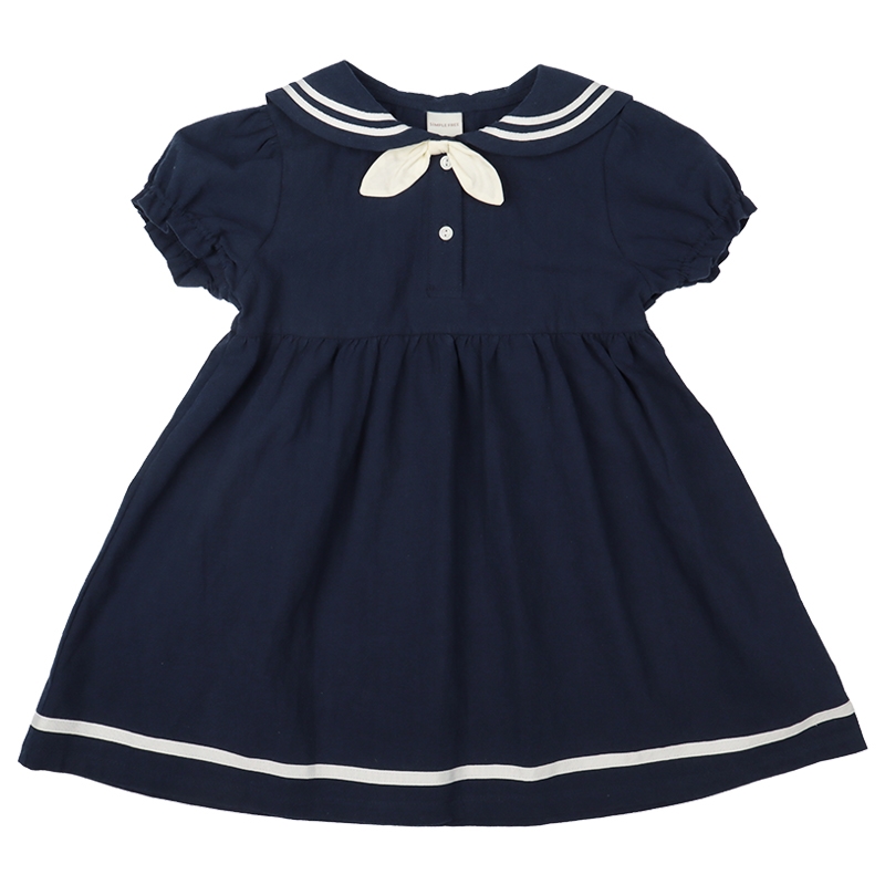 1枚でさらりと着こなせるセーラーワンピースです。 定番のアイボリーとネイビーとの2色展開。前開きボタンのため、お着替えしやすい仕様となっています。 普段使いはもちろんお出かけやフォーマルな場でも使える1枚です。