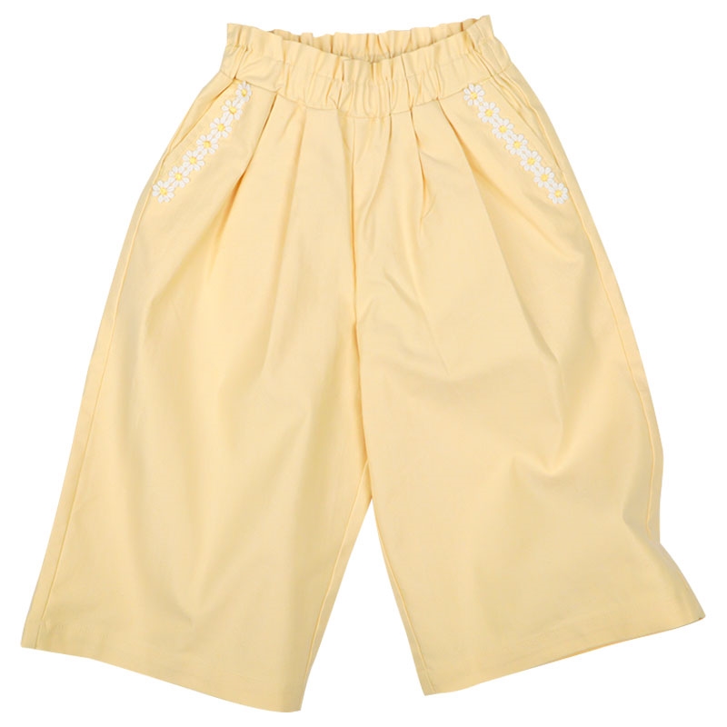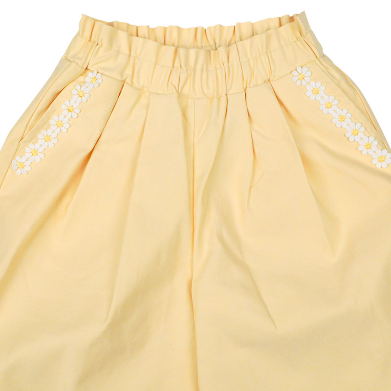 大きめシルエットが魅力のワイドパンツです。ポケット部分にはお花のレースが付いており、シンプルながらもおしゃれなザインです。ウエストゴムで着脱しやすい仕様となっています。ネイビー・イエロー・サックスの6色展開。