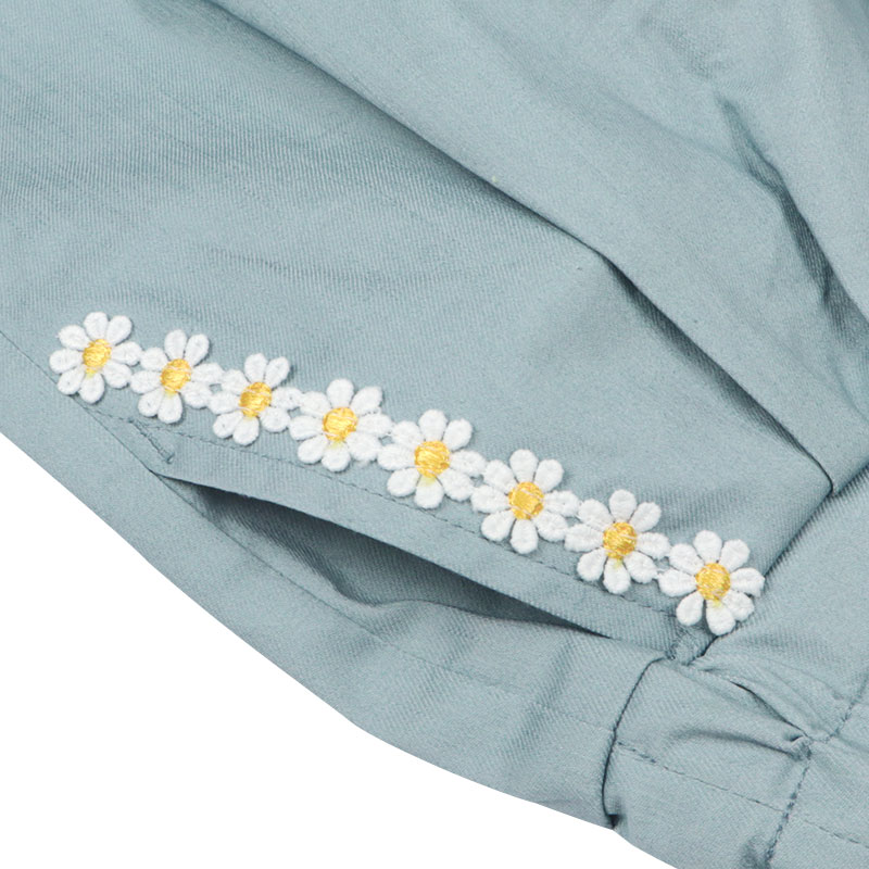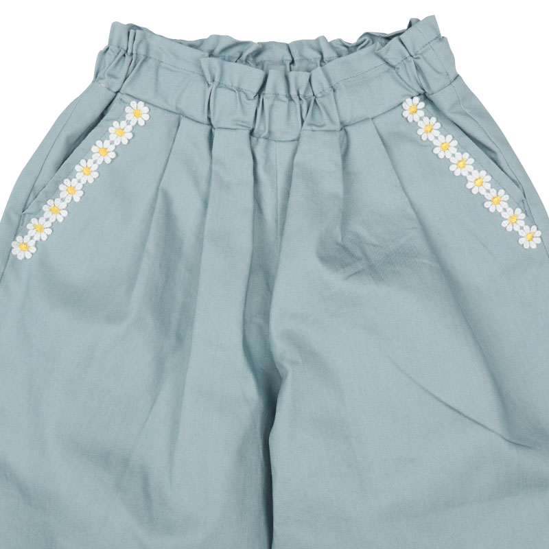 大きめシルエットが魅力のワイドパンツです。ポケット部分にはお花のレースが付いており、シンプルながらもおしゃれなザインです。ウエストゴムで着脱しやすい仕様となっています。ネイビー・イエロー・サックスの18色展開。