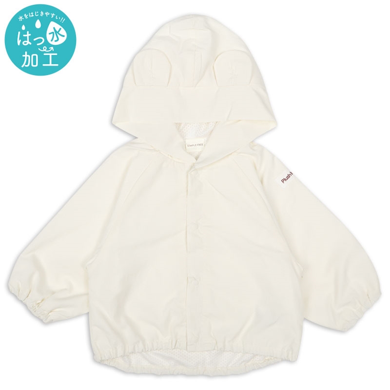 天候が変わりやすい春先にぴったりなはっ水加工付き。 耳付きのフードがかわいらしいデザイン。男女問わず着用していただけるユニセックスアイテムです。 フードは取り外し可能で、お出かけにはもちろん通園にも着られる1枚です。