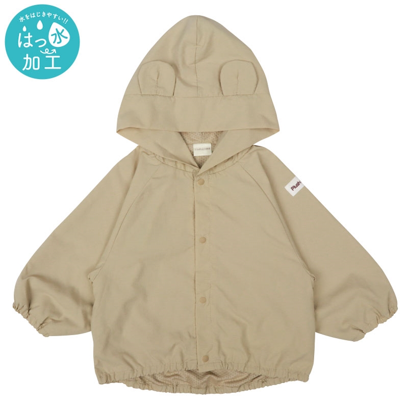 天候が変わりやすい春先にぴったりなはっ水加工付き。耳付きのフードがかわいらしいデザイン。 男女問わず着用していただけるユニセックスアイテムです。 フードは取り外し可能で、お出かけにはもちろん通園にも着られる1枚です。