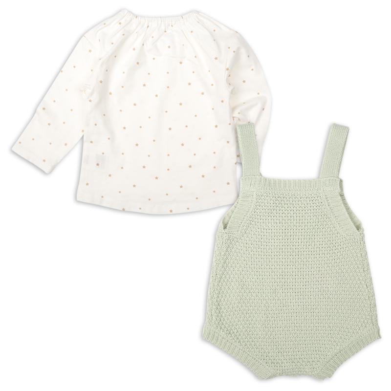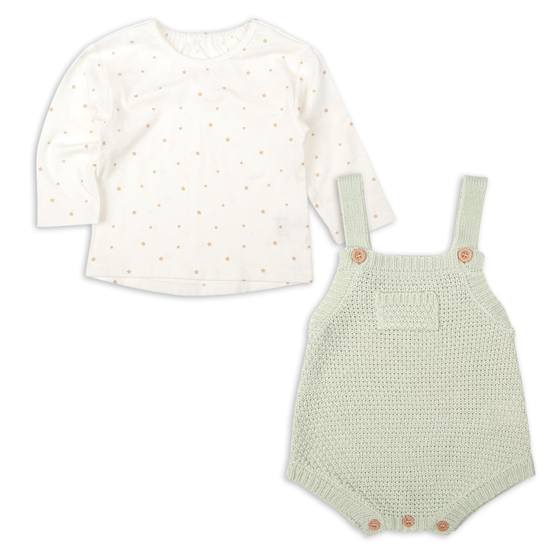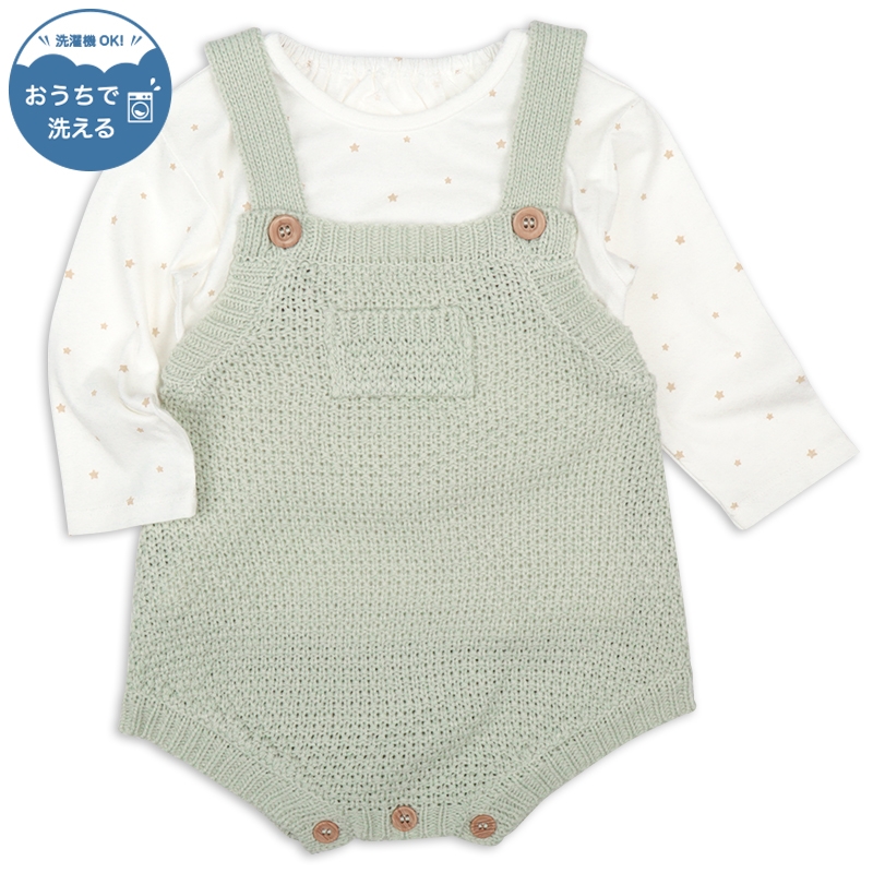 <商品サイズ> オーバーオール 70(身丈42・身幅24・腰まわり29) 80(身丈45・身幅25・腰まわり30) Tシャツ 70(身丈30・身幅26・肩幅25・裾幅26) 80(身丈33・身幅27・肩幅26・裾幅27) <素材> オーバーオール アクリル100% Tシャツ 【本体】綿100%【リブ部分】綿95%ポリウレタン5%