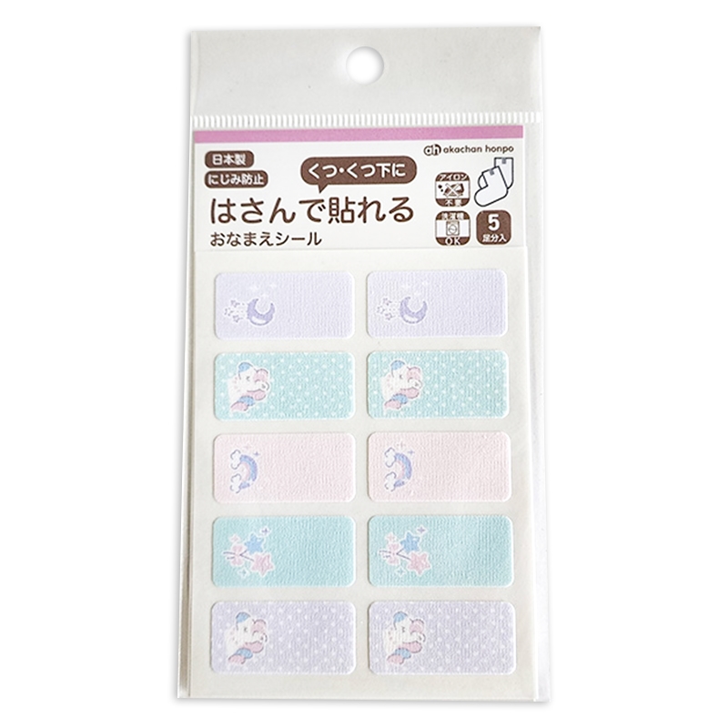 靴・靴下等の製品にはさんでつけるだけ、お名前コットンシール。
