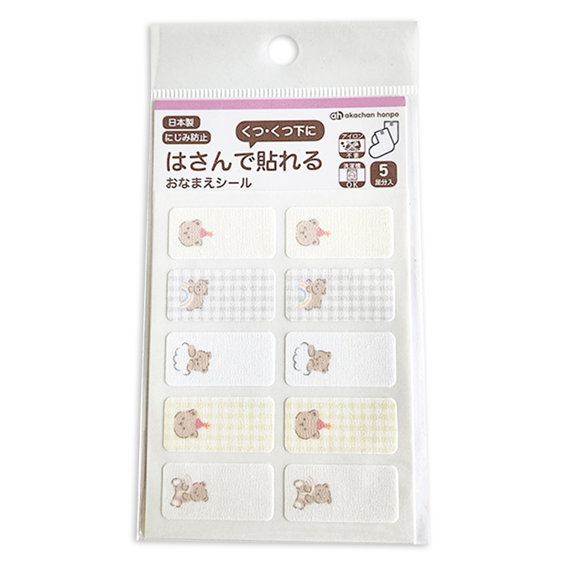 くつ・くつ下にはさんで貼れるおなまえシール くま