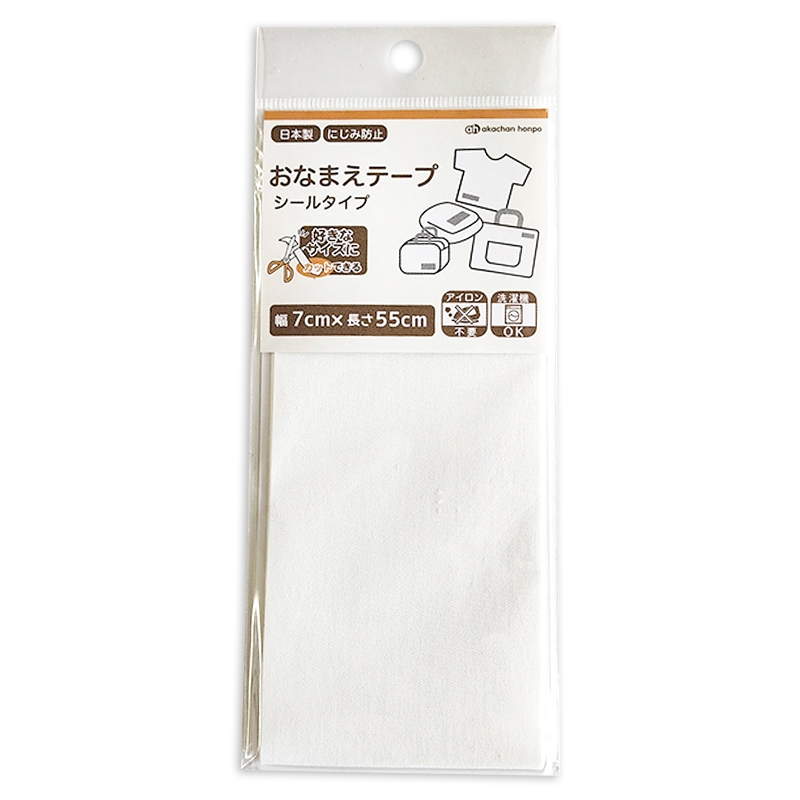 大容量 シールタイプ。 必要な大きさに切って使用する大容量のおなまえコットンテープ。 テープを好きな長さにカットし、油性ペンや布用インクのスタンプで名前を書いて使用できます。 お洗濯したい布ものは、アイロンを当てればOK。