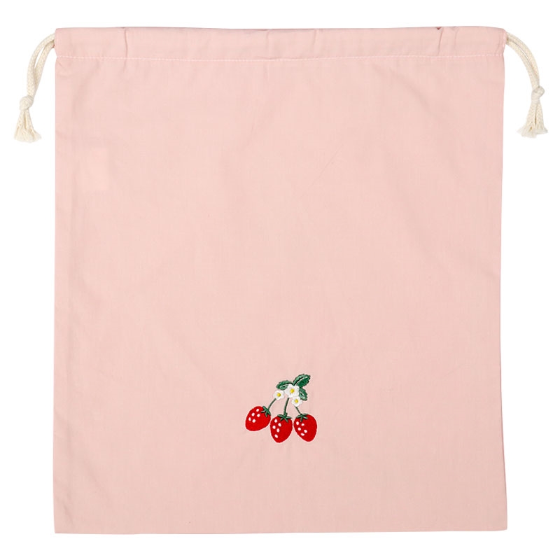 通園通学向けの大きいサイズの巾着です。 ガーリーな可愛いいちご刺繍とリボンがポイント。 体操着など大きめの物を入れるのにぴったりです。 内側には便利なお名前ネームが付いており、紛失防止にも役立ちます。 レッスンバッグやシューズバッグなど同シリーズのアイテムと揃えて、トータルコーディネートも楽しめます。