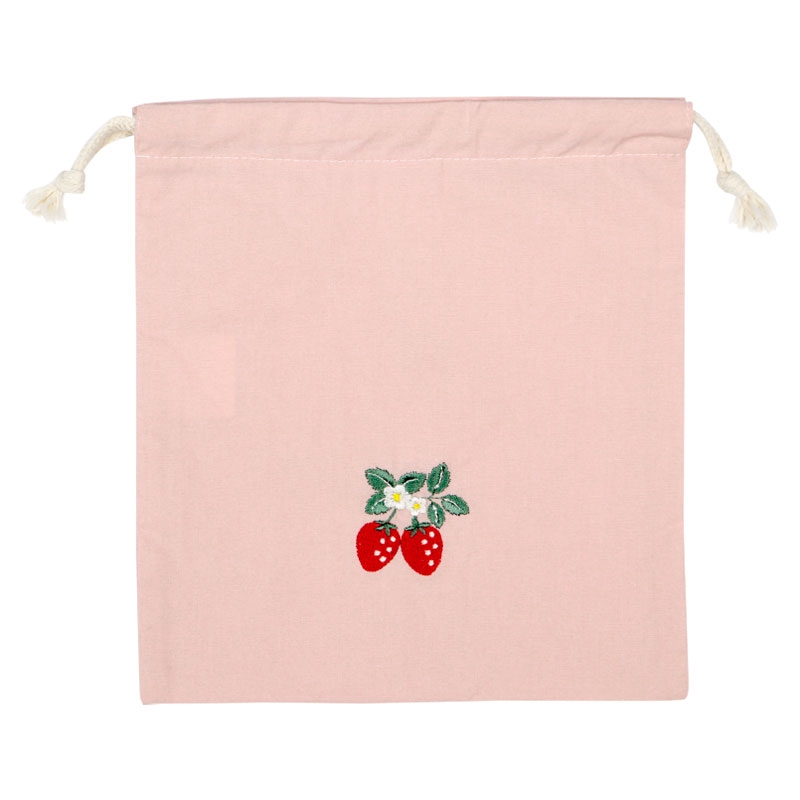 通園通学向けの小さいサイズの巾着です。 ガーリーな可愛いいちご刺繍とリボンがポイント。 こまごまとした小物を入れるのにぴったりです。 内側には便利なお名前ネームが付いており、紛失防止にも役立ちます。 レッスンバッグやシューズバッグなど同シリーズのアイテムと揃えて、トータルコーディネートも楽しめます。
