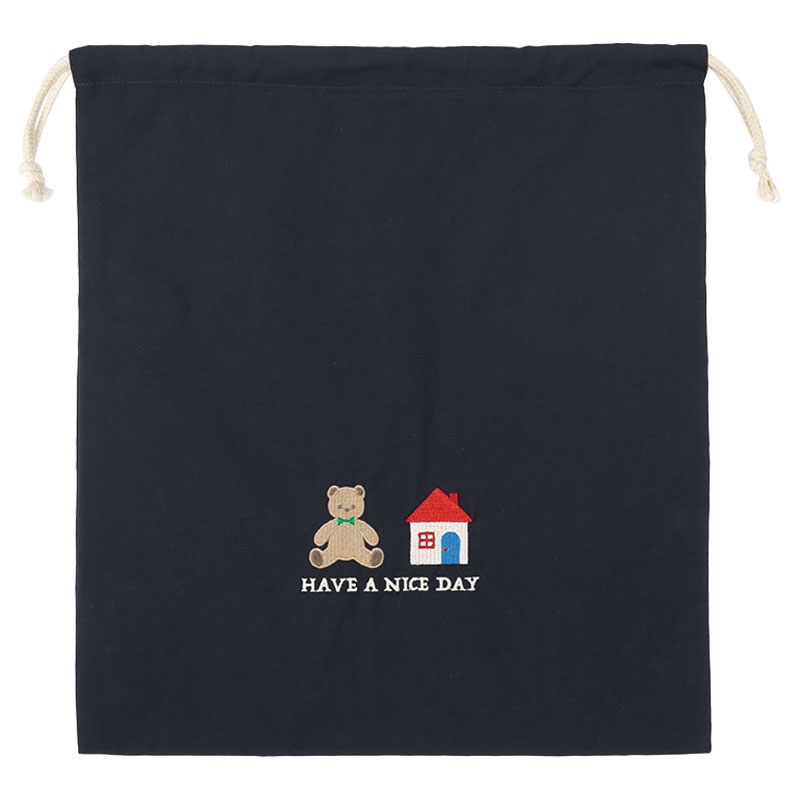 通園通学向けの大きいサイズの巾着です。 シックな可愛いおもちゃ刺繍がポイント。 体操着など大きめの物を入れるのにぴったりです。 内側には便利なお名前ネームが付いており、紛失防止にも役立ちます。 レッスンバッグやシューズバッグなど同シリーズのアイテムと揃えて、トータルコーディネートも楽しめます。