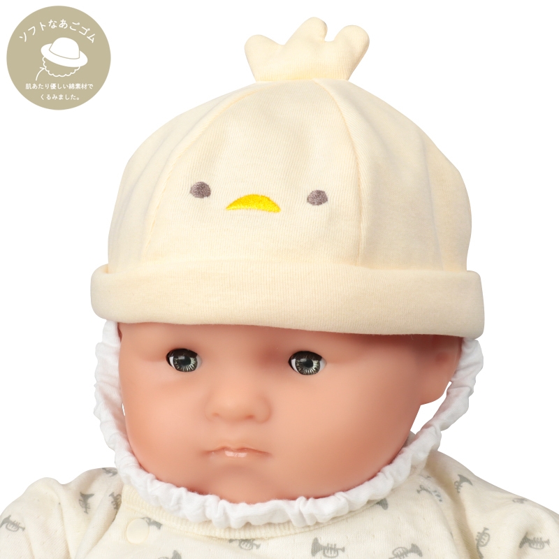 丸みのあるフォルムが可愛らしい、アニマルモチーフのアイテムです。 頭の毛先とつぶらな表情の刺繍がポイント。 ロールアップのツバなので、お子様の表情が隠れません。 風などによる帽子の落下を防ぐアゴゴム付き。 アゴゴムは生地でくるんだ仕様なので肌あたりが優しいです。