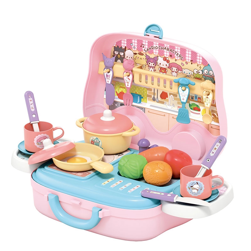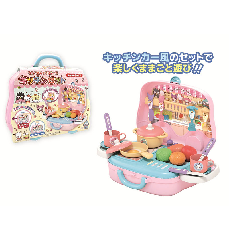●対象年齢:3歳~ ●商品サイズ(約・mm):W250×H210×D100 ●商品重量(約):610g ●付属内容:なべ・フライパン・皿・コップ・カトラリー・野菜・目玉焼き ●素材:[本体・各パーツ]PP [きゃべつ・みかん・にんじん・りんご]PE ●STマーク取得 (c)SANRIO