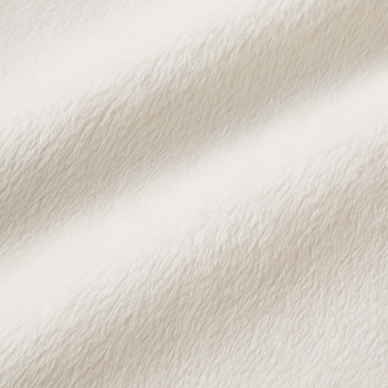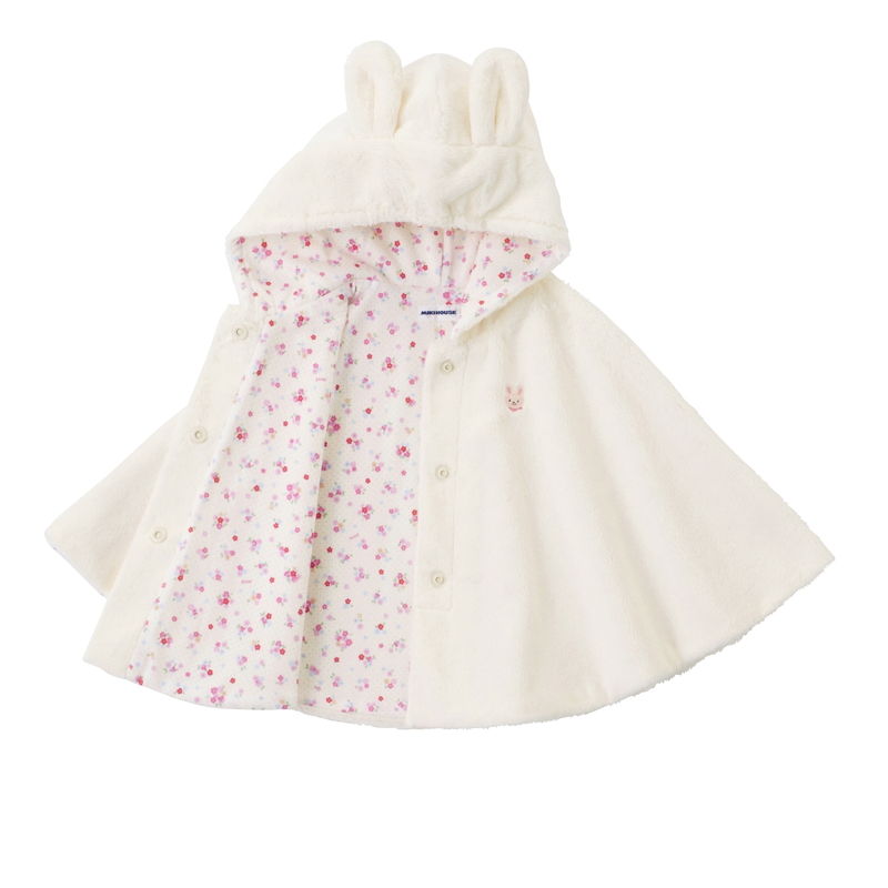 ●素材=(表地)マイクロファー 〈白・ピンク〉(裏地)40/2天竺プリント 〈ベージュ〉(フード裏)40/2天竺ボーダー、(身頃裏)40/2天竺 〈白×黄〉(フード裏)スムースプリント、(身頃裏)40/2天竺 ●品質=(表地) ポリエステル 100%、(裏地) 綿 100% ●原産国=日本
