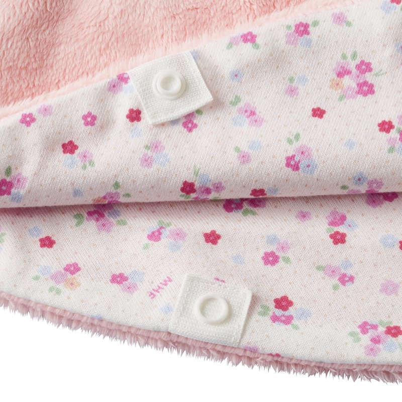 ●素材=(表地)マイクロファー 〈白・ピンク〉(裏地)40/2天竺プリント 〈ベージュ〉(フード裏)40/2天竺ボーダー、(身頃裏)40/2天竺 〈白×黄〉(フード裏)スムースプリント、(身頃裏)40/2天竺 ●品質=(表地) ポリエステル 100%、(裏地) 綿 100% ●原産国=日本