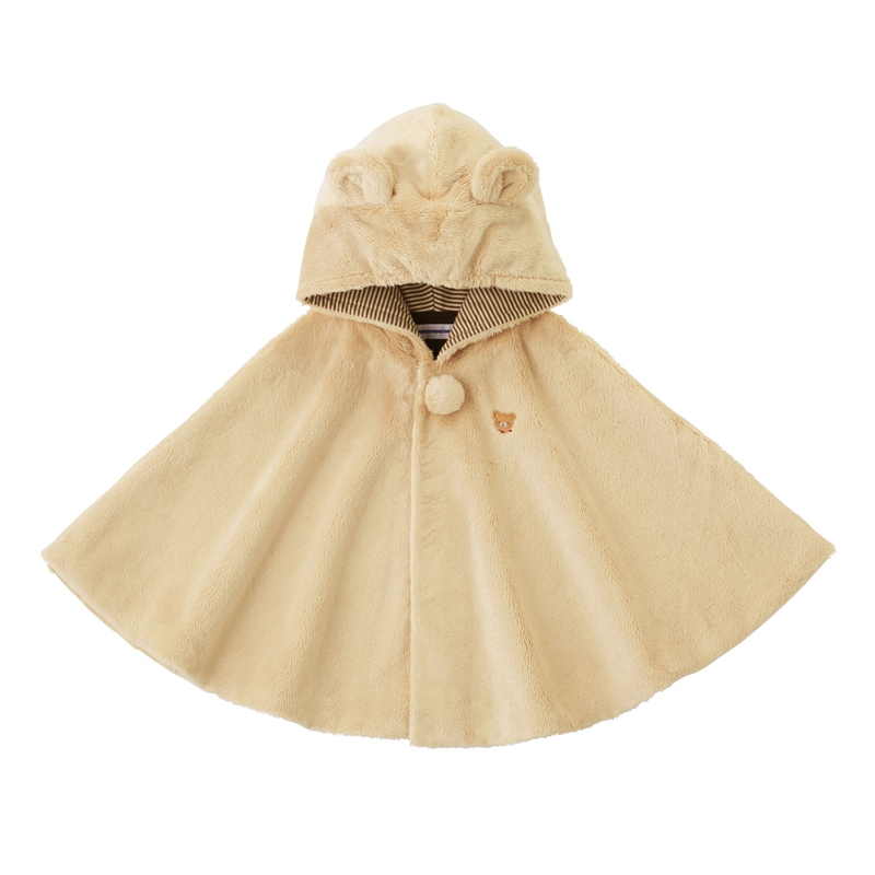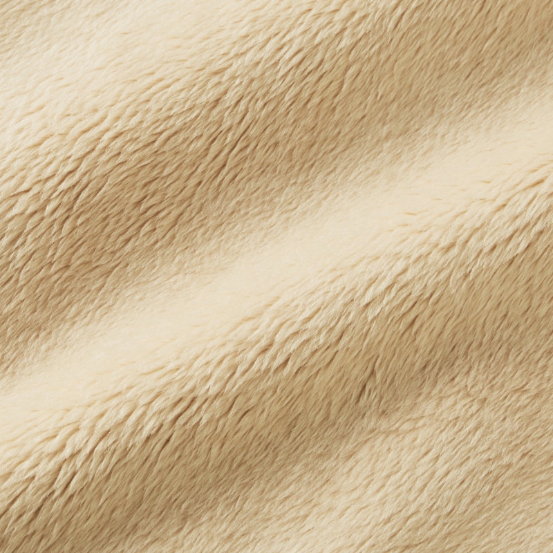 ●素材=(表地)マイクロファー 〈白・ピンク〉(裏地)40/2天竺プリント 〈ベージュ〉(フード裏)40/2天竺ボーダー、(身頃裏)40/2天竺 〈白×黄〉(フード裏)スムースプリント、(身頃裏)40/2天竺 ●品質=(表地) ポリエステル 100%、(裏地) 綿 100% ●原産国=日本