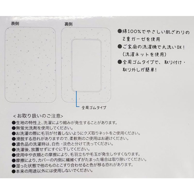 ●素材:綿100% ●商品サイズ(約・cm):70×120 ●お取り扱いのご注意: ・生地の特性上、洗濯により縮みが発生することがあります。 ・無蛍光洗剤を使用してください。 ・お洗濯の際に毛羽が付着しないようにクズ取りネットをご使用ください。 ・滑脱する恐れがありますので、柔軟剤のご使用はお避けください。 ・濃色品の洗濯時は、白色・淡色と分けて洗ってください。 ・洗濯後、放置せずにすぐに干してください。 ・使用中や衣類との摩擦により、毛羽立ちや毛玉が発生しやすくなります。 ・摩擦により、カバーの内側に繊維くずがたまった場合は取り除いてください。 ・湿った状態で他のものとこすり合わせると色が移る恐れがあります。 ・本来の用途以外には使用しないでください。