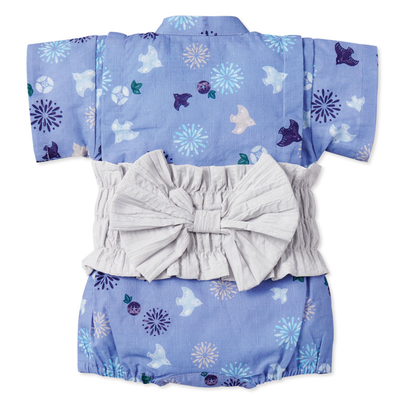 [ベビー]帯付甚平(じんべい)ロンパス 千鳥 ブルー
