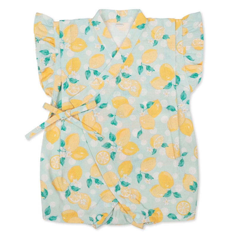[ベビー]フリル付甚平(じんべい)ロンパス レモン