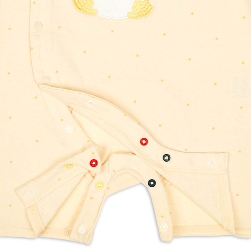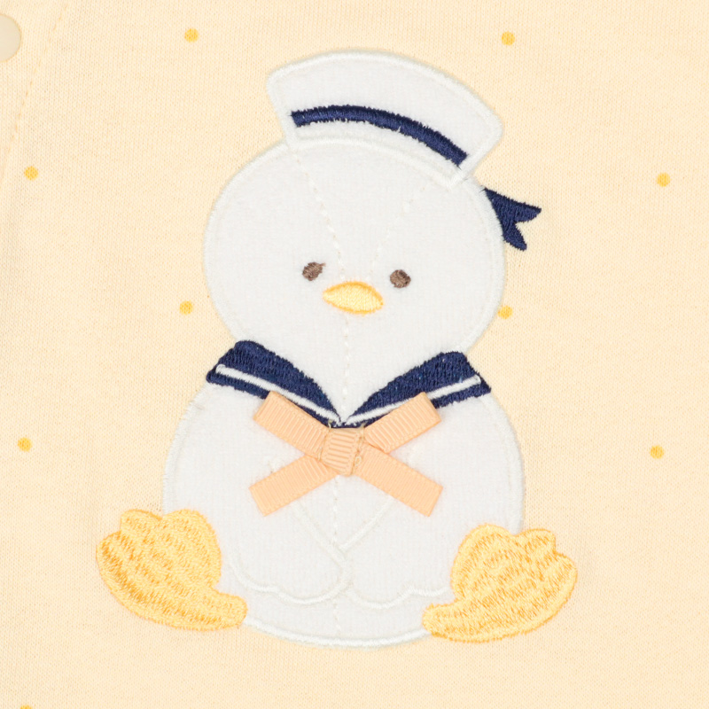 ・組成 本体 綿100% リブ部分 綿95% ポリウレタン5% 附属部分 綿85% ポリエステル15% ・スペック 60サイズ 総丈45.5cm 肩幅20cm 胸幅25.5cm 袖丈9cm 70サイズ 総丈48cm 肩幅21cm 胸幅26.5cm 袖丈9.5cm 80サイズ 総丈50.5cm 肩幅22cm 胸幅27.5cm 袖丈10cm