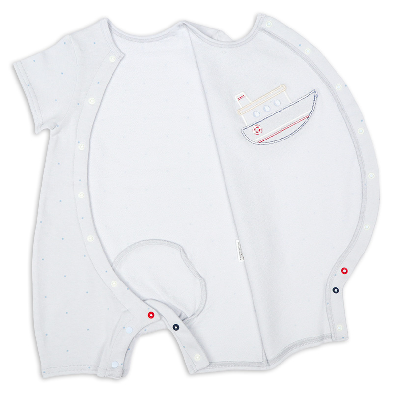 ・組成 本体 綿100% リブ部分 綿95% ポリウレタン5% 附属部分 綿85% ポリエステル15% ・スペック 60サイズ 総丈45.5cm 肩幅20cm 胸幅25.5cm 袖丈9cm 70サイズ 総丈48cm 肩幅21cm 胸幅26.5cm 袖丈9.5cm 80サイズ 総丈50.5cm 肩幅22cm 胸幅27.5cm 袖丈10cm