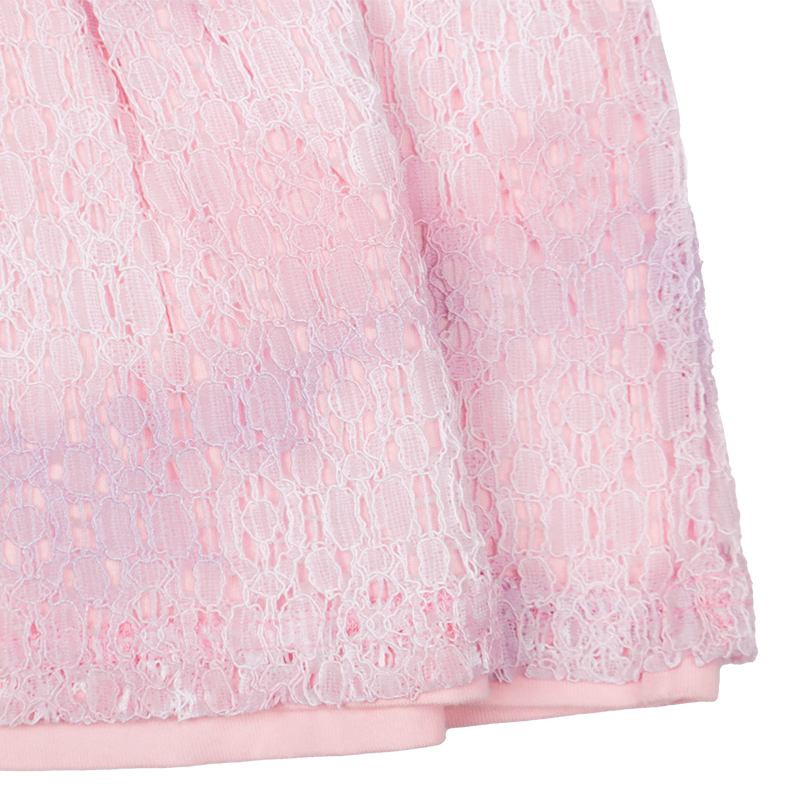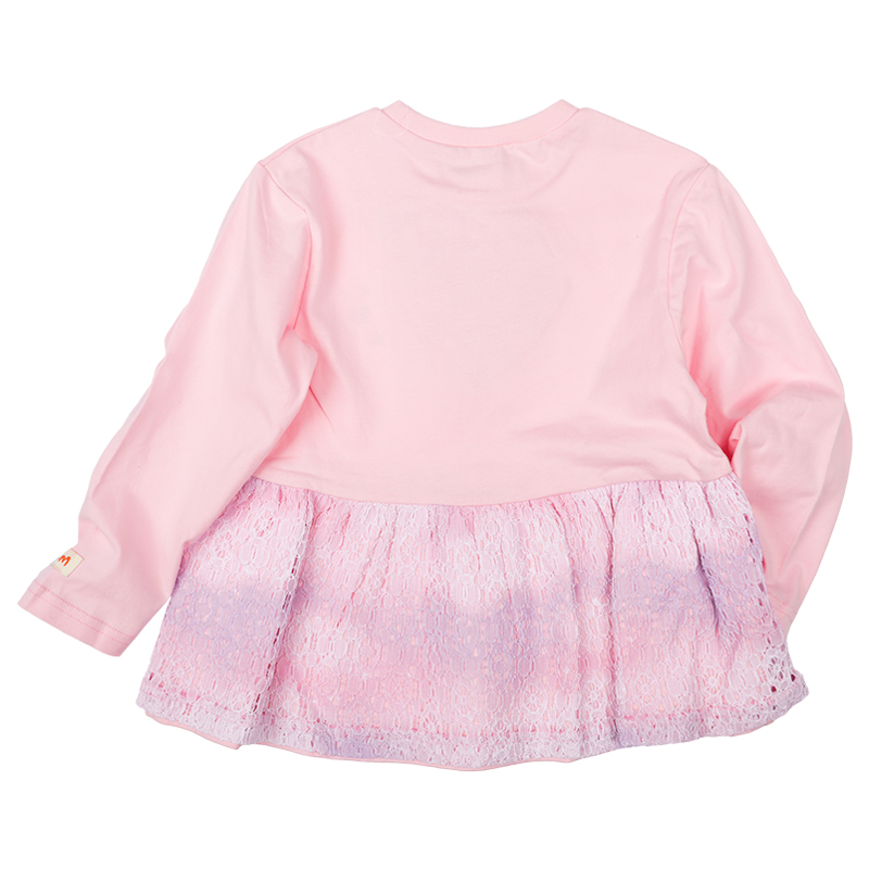 ●素材=天竺 [本体]綿100%[リブ]綿95%ポリウレタン5%[部分使]ポリエステル100%[レース部分]レーヨン60%ナイロン40% ●サイズ(約・cm)= [100] 身丈42・身幅31・袖丈32.5・裾幅33 [110] 身丈45・身幅33・袖丈36・裾幅35 [120] 身丈48・身幅35・袖丈39.5・裾幅37 [130] 身丈51・身幅37・袖丈43・裾幅39
