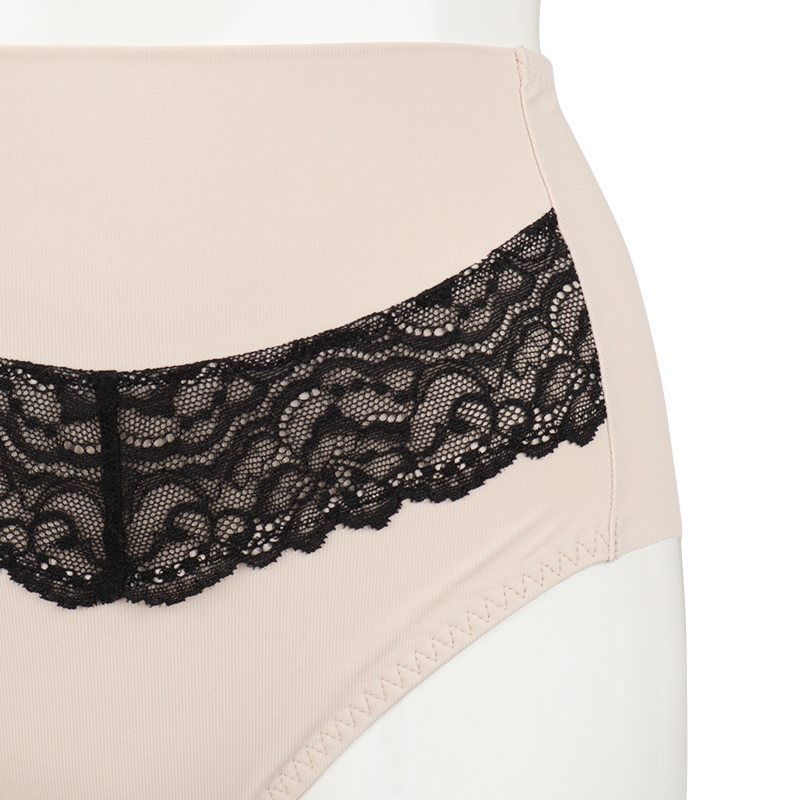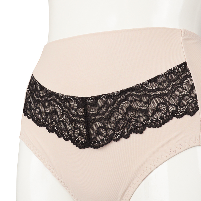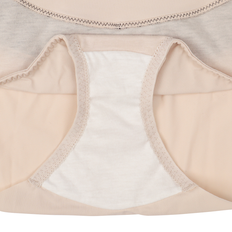 気になるお腹をほどよく押さえてくれる。 後足口は切りっぱなしで、ぴったりとしたパンツスタイルにも響きにくく、軽くて快適。