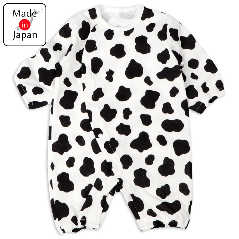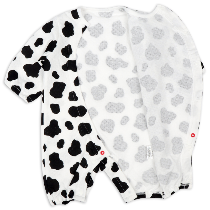 軽くて柔らか素材のうし柄がかわいいちびオールです。 綿100%の接結天竺の生地で作られたこちらの商品は、軽くてやわらかな肌触りで通気性や吸湿性に優れています。 また赤ちゃんの動きを妨げないデザインは、手足をバタバタ活発に動かすようになってきた赤ちゃんにピッタリです。