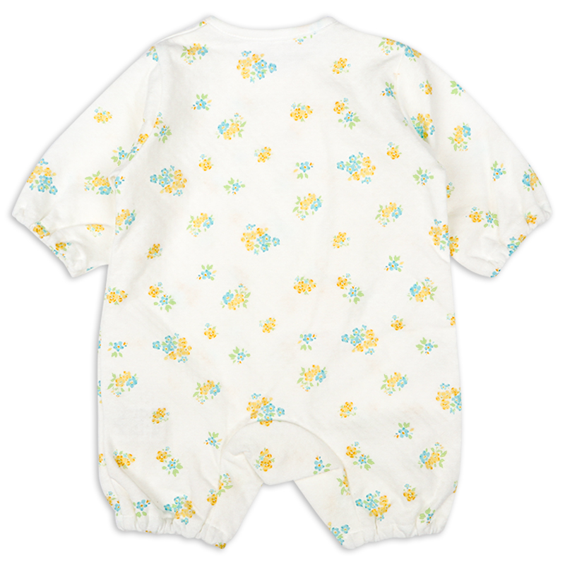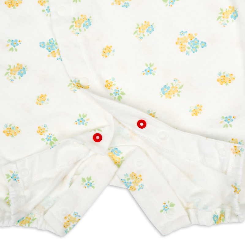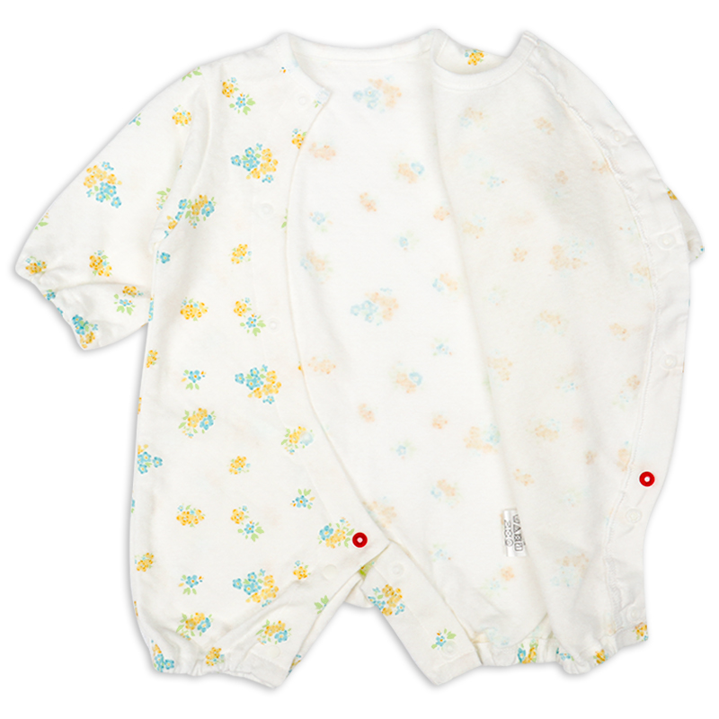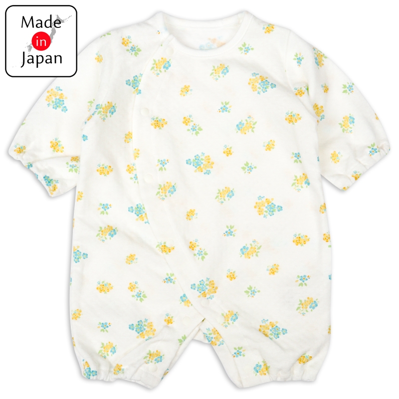 軽くて柔らか素材の花柄がかわいいちびオールです。 綿100%の接結天竺の生地で作られたこちらの商品は、軽くてやわらかな肌触りで通気性や吸湿性に優れています。 また赤ちゃんの動きを妨げないデザインは、手足をバタバタ活発に動かすようになってきた赤ちゃんにピッタリです。