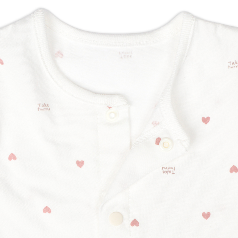 ドレスオールとしても、カバーオールとしても使える便利アイテム。 生まれてすぐの赤ちゃんはおむつ替えが多くて大変。 ドレスタイプにしていれば、裾をめくるだけでおむつ替えが出来るので、とってもラクになります。 足の動きが活発になった時は、カバーオールタイプにすると、お洋服がめくりあがりません。 カバーオール時の股下ボタンは色付きボタンで留め間違えの心配もありません。