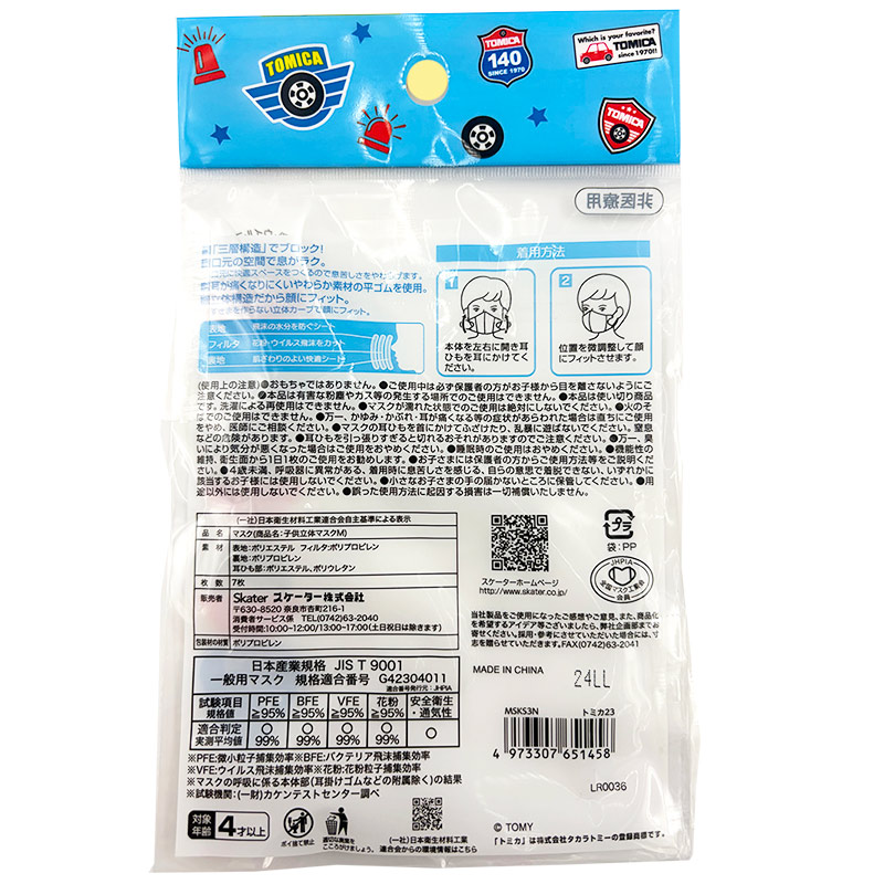 ●サイズ(約・㎜):120×100(耳ひもを除く最大のサイズ) ●入り数:7枚入り ●対象年齢:4歳以上 ●品質表示 表地:ポリエステル フィルタ:ポリプロピレン 裏地:ポリプロピレン 耳ひも部:ポリエステル、ポリウレタン