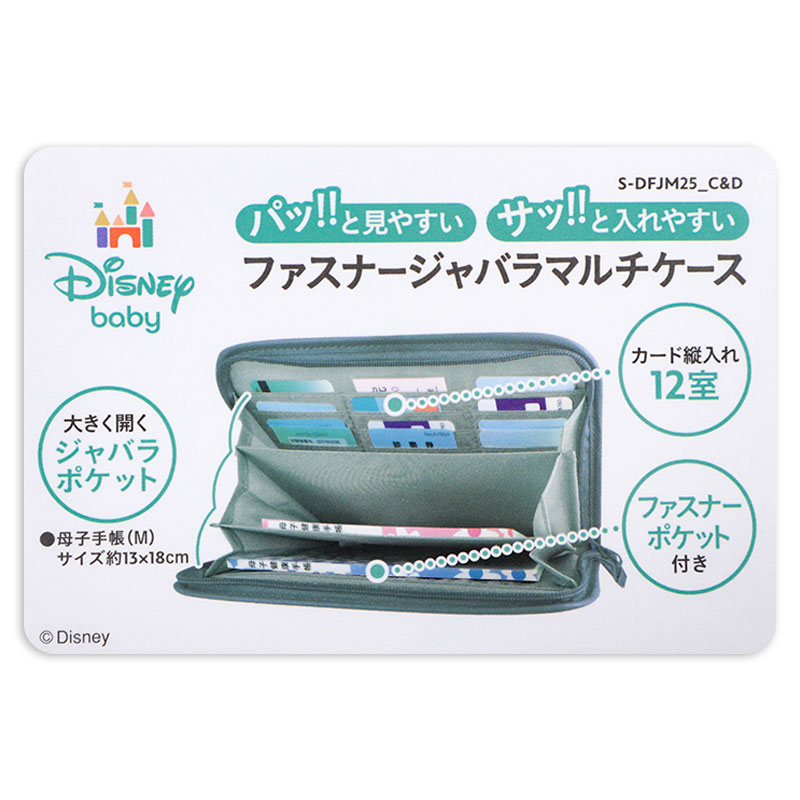 ディズニーに登場するお馴染みの猫と犬が大集合。 口が大きく開くので母子手帳や診察券の出し入れもサッと出来ます。 ジャバラタイプになっているので何がどこに入っているかも見やすく、カード入れも12室ついているので整理しやすいのが特徴です。小物を収納できるファスナーポケット付き。