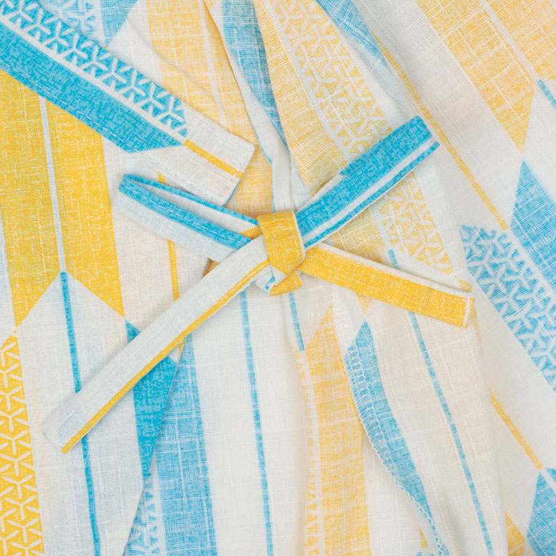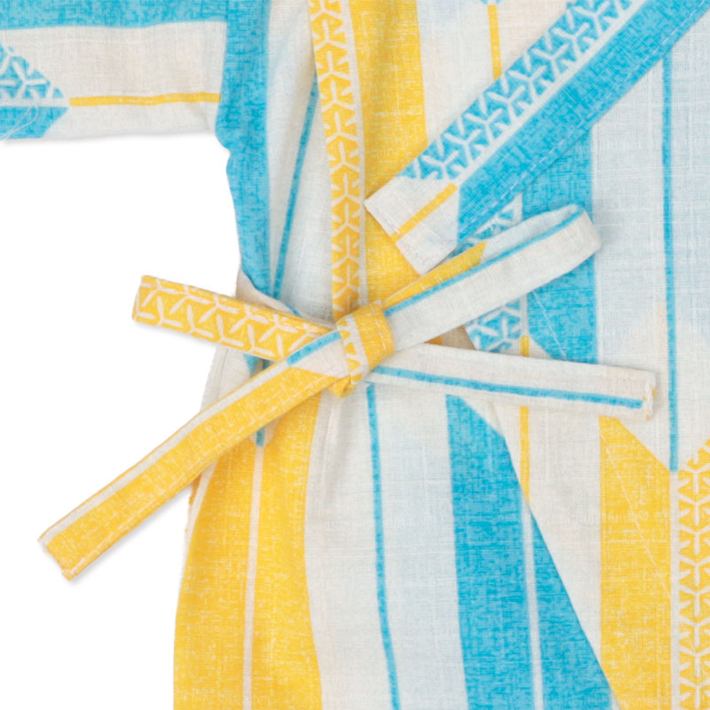 素材の表面は変化を施し凸凹感を表現、和柄に見合った綿100%素材で日本製生地を使用しております。商品に関しましては身にまとう事で風を良く通して涼しく蒸れにくい。また、紐調節が出来るので身体を締め付けず動きやすい。