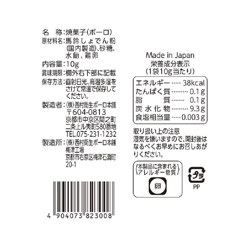 ●対象月齢:7ヵ月~ ●焼菓子(ボーロ) ●原材料:馬鈴しょでん粉(国内製造)、砂糖、水飴、鶏卵 ●商品サイズ(約・mm):75×20×555 ●内容量:10g×4 ●栄養成分:1袋10g当たり [熱量]38kcal [たんぱく質]0.1g [脂質]0.1g [炭水化物]9.3g [食塩相当量]0.003g [ナトリウム]-mg