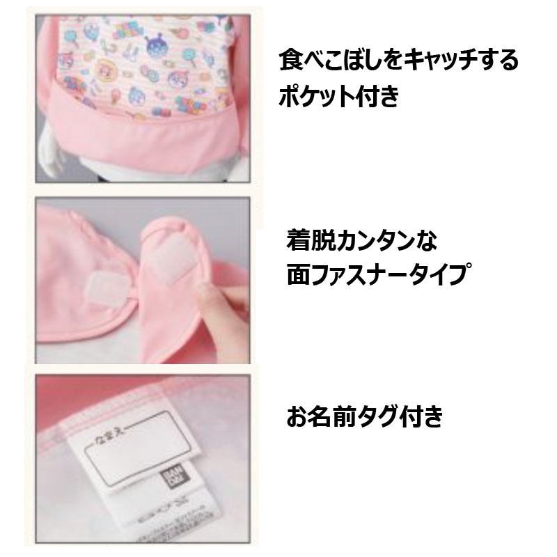 うしろの布を表に返すとポケットになり、食べこぼしをキャッチしてくれる長袖エプロンです。 面ファスナーなので着脱もカンタン。 お名前ネーム付きです。 アンパンマンキャラクターと一緒に楽しいお食事タイムを過ごしましょう。 (c)やなせたかし/フレーベル館・TMS・NTV