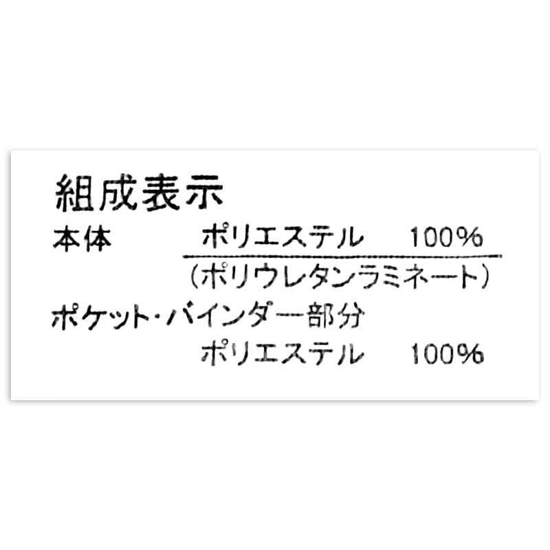 ●素材:[本体]ポリエステル100%(ポリウレタンラミネート) [ポケット・バインダー部分]ポリエステル100% ●サイズ(約・cm):総丈34.5 身幅21 前丈20.5 ポケット高さ10 ●洗濯表示:洗濯可
