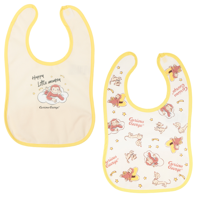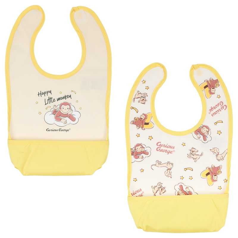 おさるのジョージのエプロンで楽しいお食事タイム うしろの布を表に返すとポケットになり、食べこぼしをキャッチしてくれる2枚組エプロンです。 面ファスナーなので着脱もカンタン。 お名前ネーム付きです。 おさるのジョージと一緒に楽しいお食事タイムを過ごしましょう。 (C)&(R) UCS LLC and HC LLC