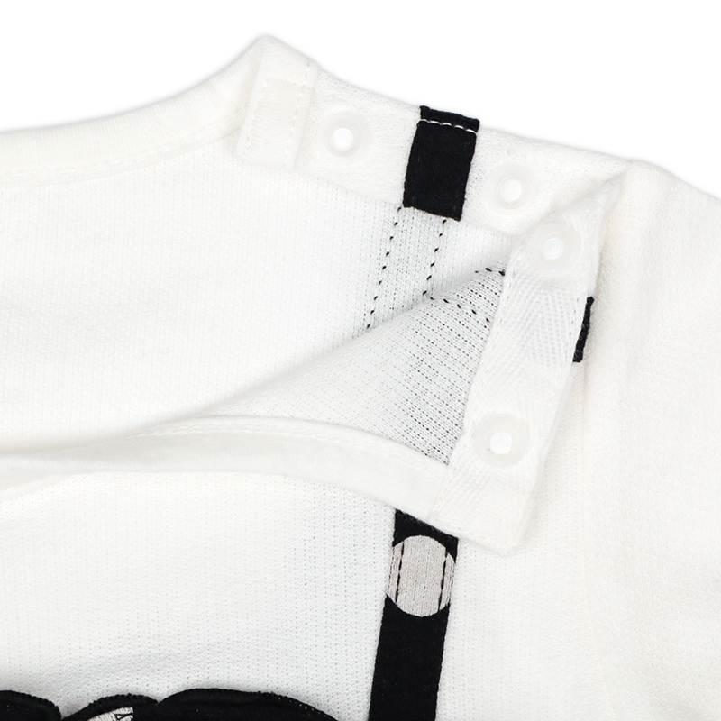 前立、股下が着脱しやすいスナップボタンになってるので股下からかぶればお着替えもオムツ替えも楽々です。