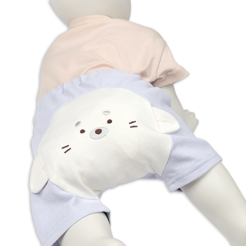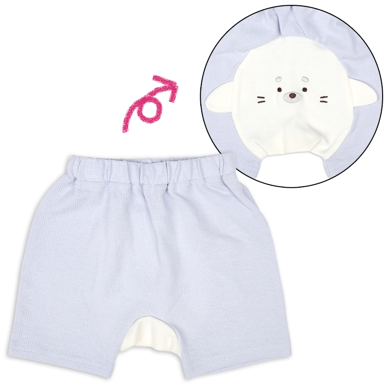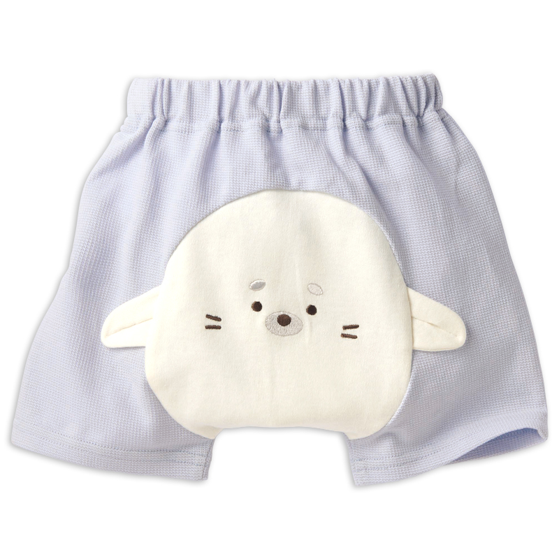 綿100%のピケ生地を使用したパンツです。 おしり部分にはアニマルのモチーフがあり ハイハイや歩いている時により可愛くなる商品です。 着用の際、窮屈感がなくお子様に負担をかけず動きやすいパンツです。