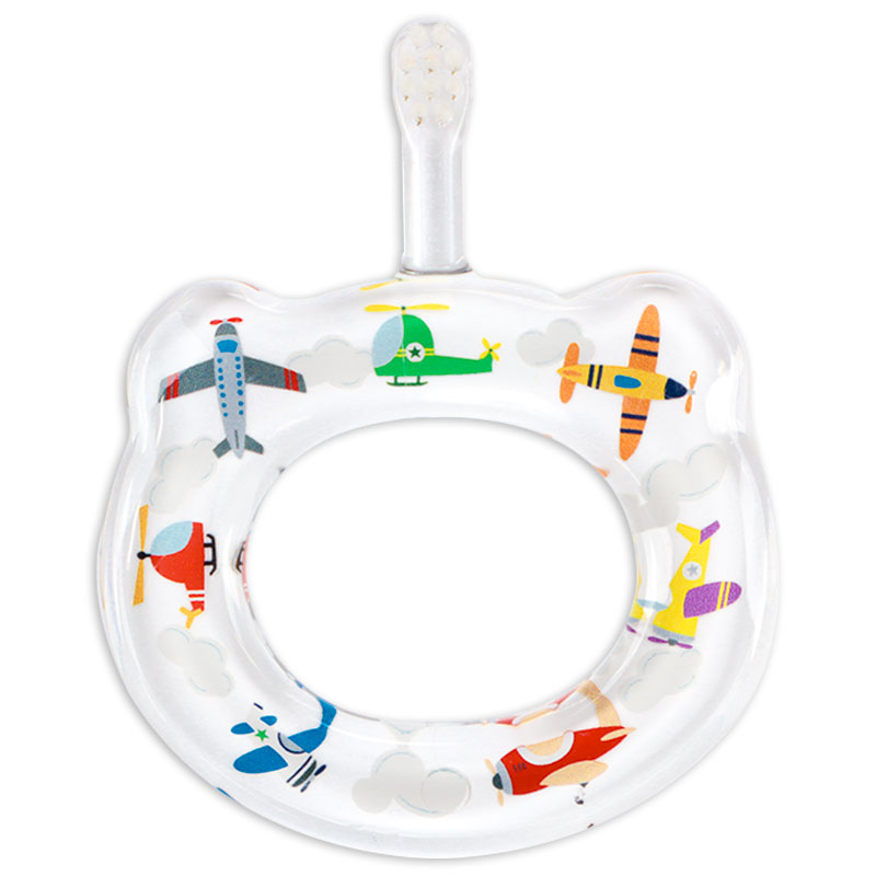 ●サイズ(約・cm):幅7×奥行8.5×高さ1 ●重量(約):25g ●柄の材質:飽和ポリエステル樹脂 ●毛の材質:ナイロン ●毛の方さ:やわらかめ ●対象月齢:5ヵ月~3歳 ●耐熱温度:80℃ ・ご使用後は流水でよく洗い、水切りをして風通しの良い場所で乾燥させてください。 ブラシの中の食べかすを除去し、しっかり乾燥させることで十分に雑菌の繁殖を抑えることができます。 ・煮沸、電子レンジ、薬液による消毒はブラシが変形・変色する恐れがあるためお控えください。 ・製品の強度には十分配慮しておりますが、ハブラシを強く噛むと毛が抜けたり柄が変形したりする場合があります。 ご使用のたびに確認し、著しく毛が飛び出したものや変形したものは新しいものに取り替え、保護者の監督のもとご使用ください。