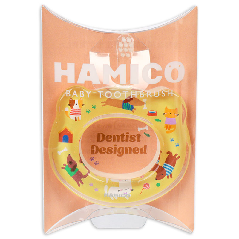 歯みがきが好きになるベビーハブラシ 歯みがきを好きな子になってほしいから、ベビーが好きになれるハブラシをつくりたい。 そんな、歯科医師と歯科衛生士の思いから生まれたHAMICO(ハミコ)は、可愛くて、安全で、しっかりとみがける新しいベビー用ハブラシ。 乳歯の生え始めから使え、ハミガキトレーニングや仕上げ磨きに最適です。